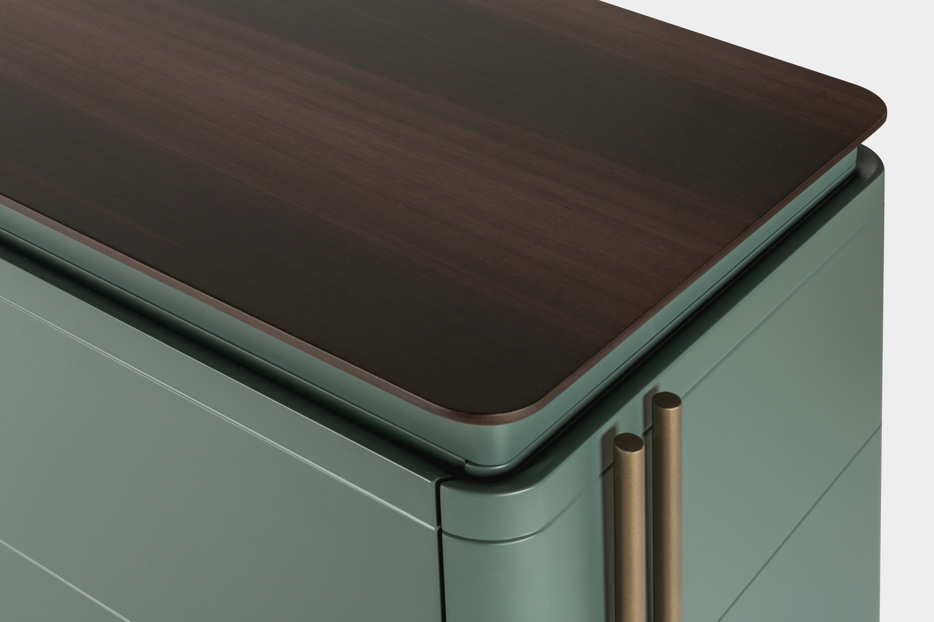 - Verkrijgbaar in verschillende en met meerdere materialen: matte lakkleuren, noten (meerdere kleuren), eucalyptus, eiken (meerdere kleuren).