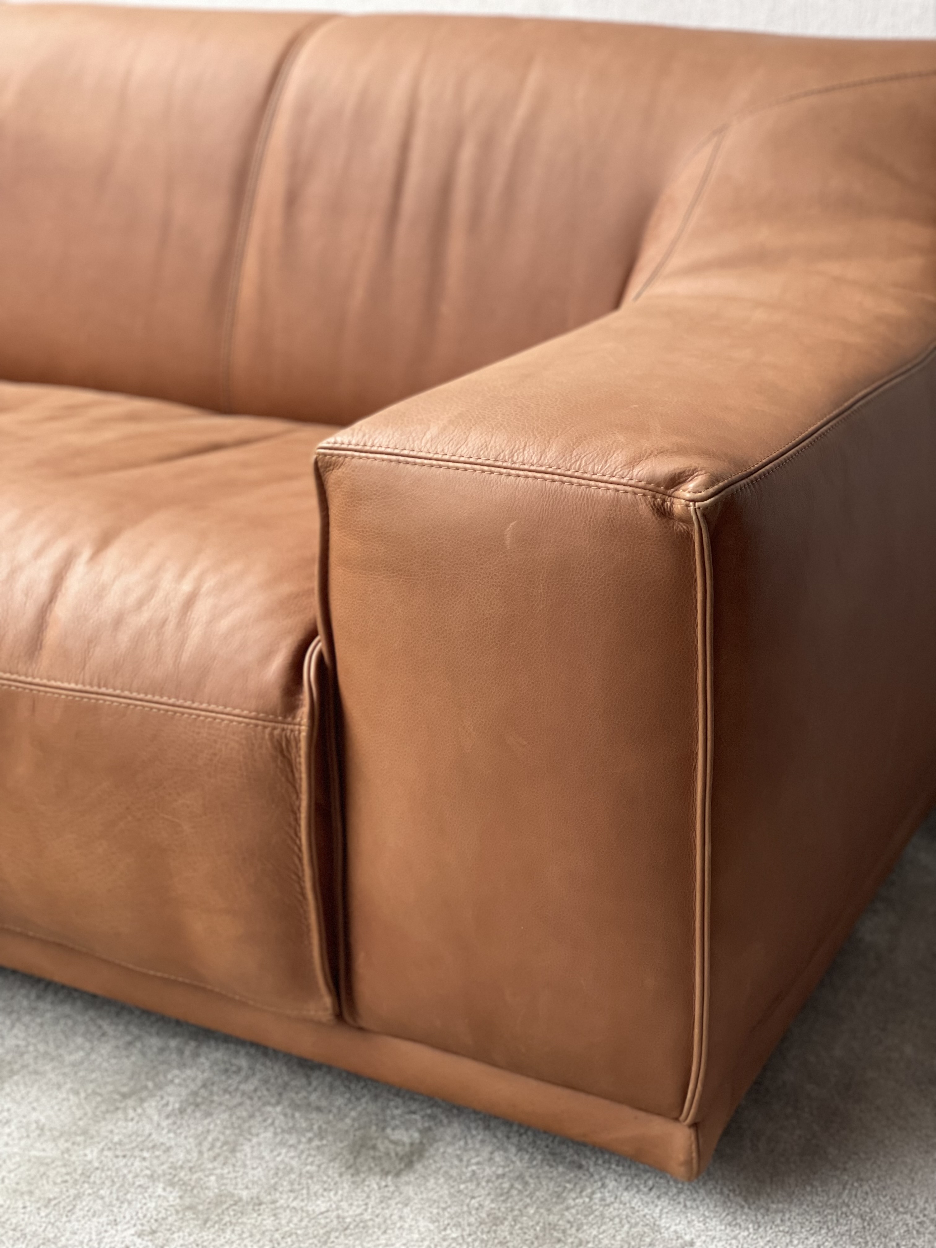 Prachtige lederen bank van het Duitse merk Machalke met mooie gestroomlijnde vormen. De bekleding is van hoogwaardig kwaliteitsleder.