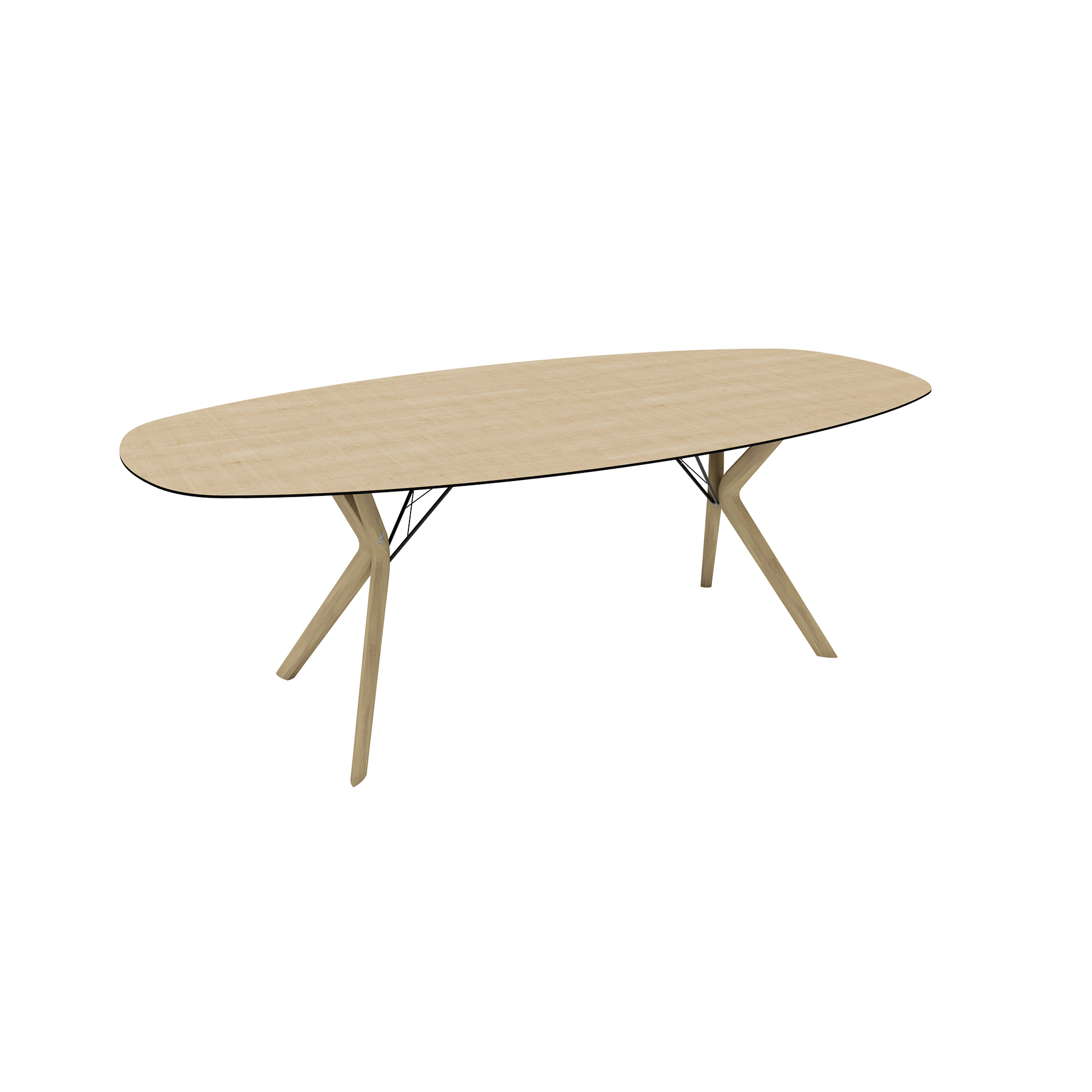 Zelfverzekerde bogen en afgeronde lijnen. Een onderstel van hout en metaal in ongestructureerde lijnen en zo de perfecte match voor de Cosy-stoelen. Een blad met verrassend veel finesse. De tafel Éclipse onthult een verlangen naar extreme lichtheid.