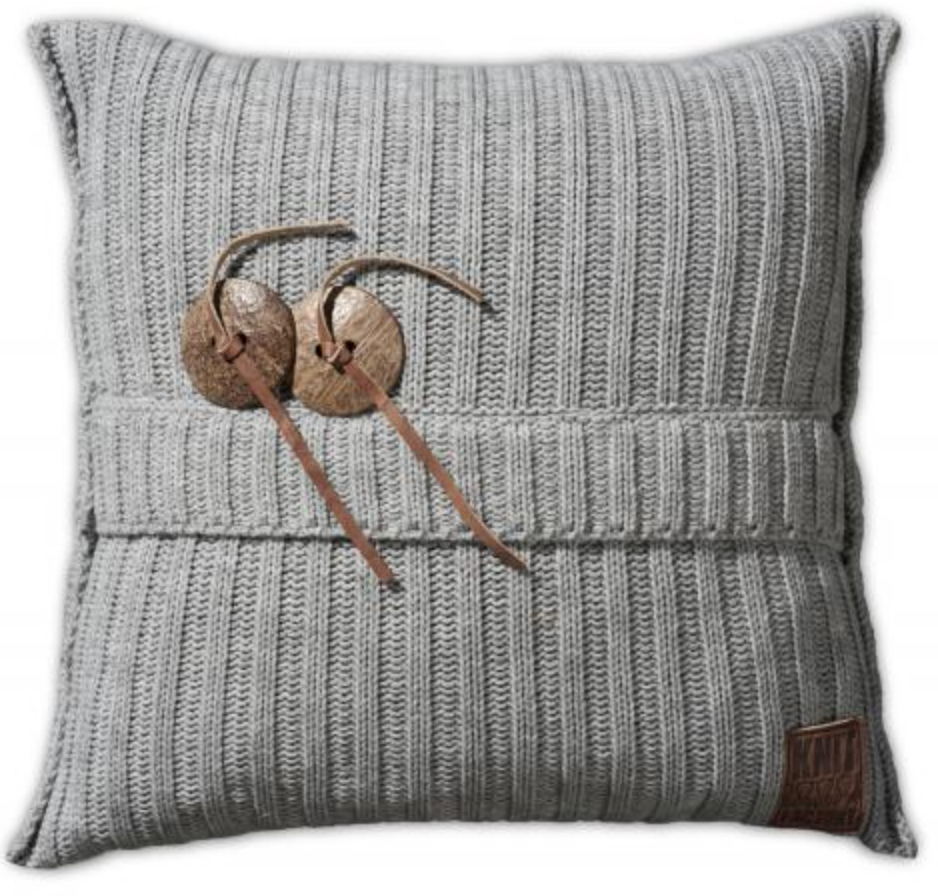 Kussen “Aran” is er in de kleuren antraciet, licht grijs, beige, jeans, groen en wit.