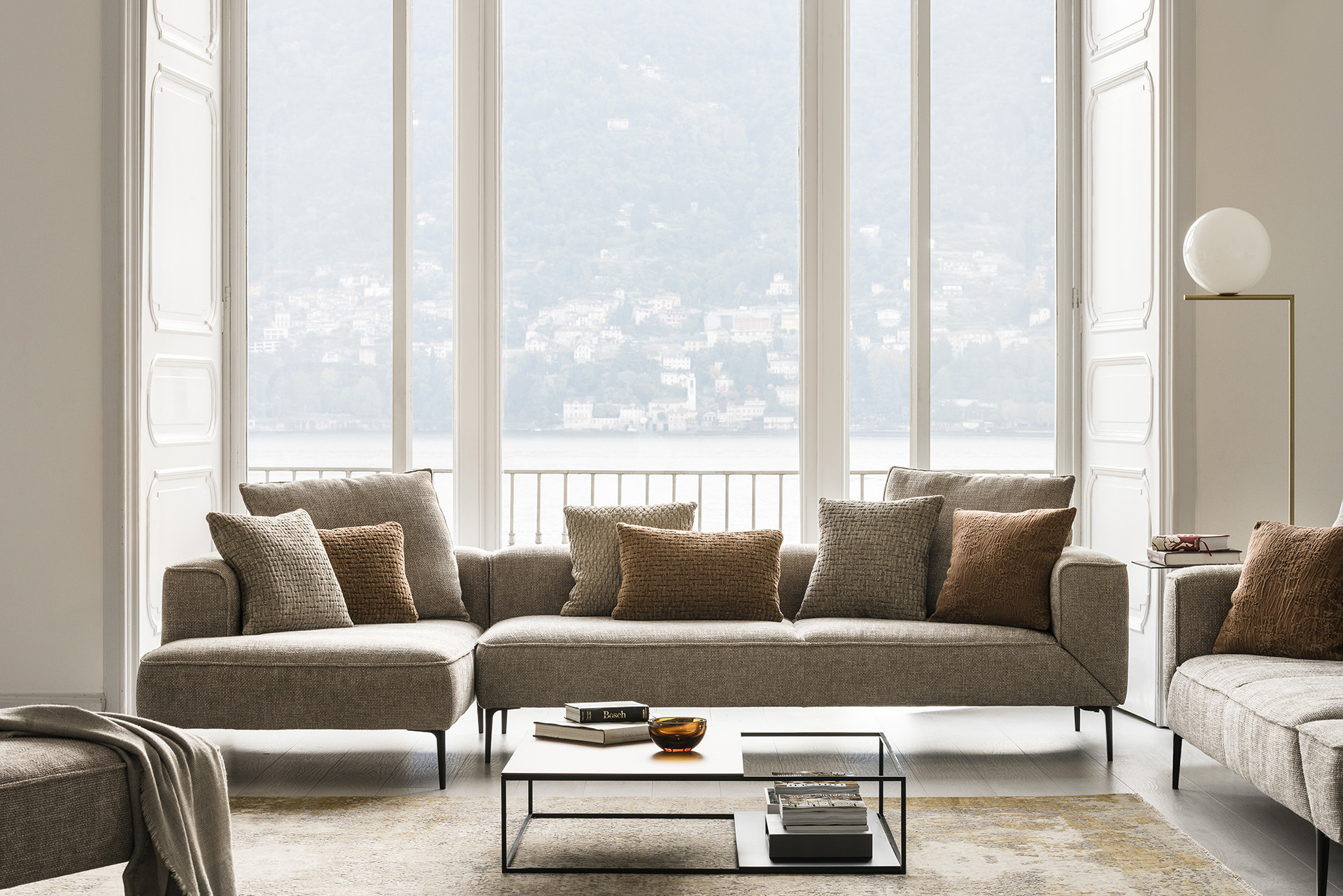 Een belangrijk kenmerk is het inventieve draaimechanisme van de armleuningen. Deze zijn volledig open te klappen en creëren zo extra zitplaatsen, een comfortabele ligplek of extra ruimte voor een dienblad of tijdschriften. Zo combineert de Longueville Landscape zitcomfort met functionaliteit en sluit hij perfect aan bij de woonstijl van vandaag.