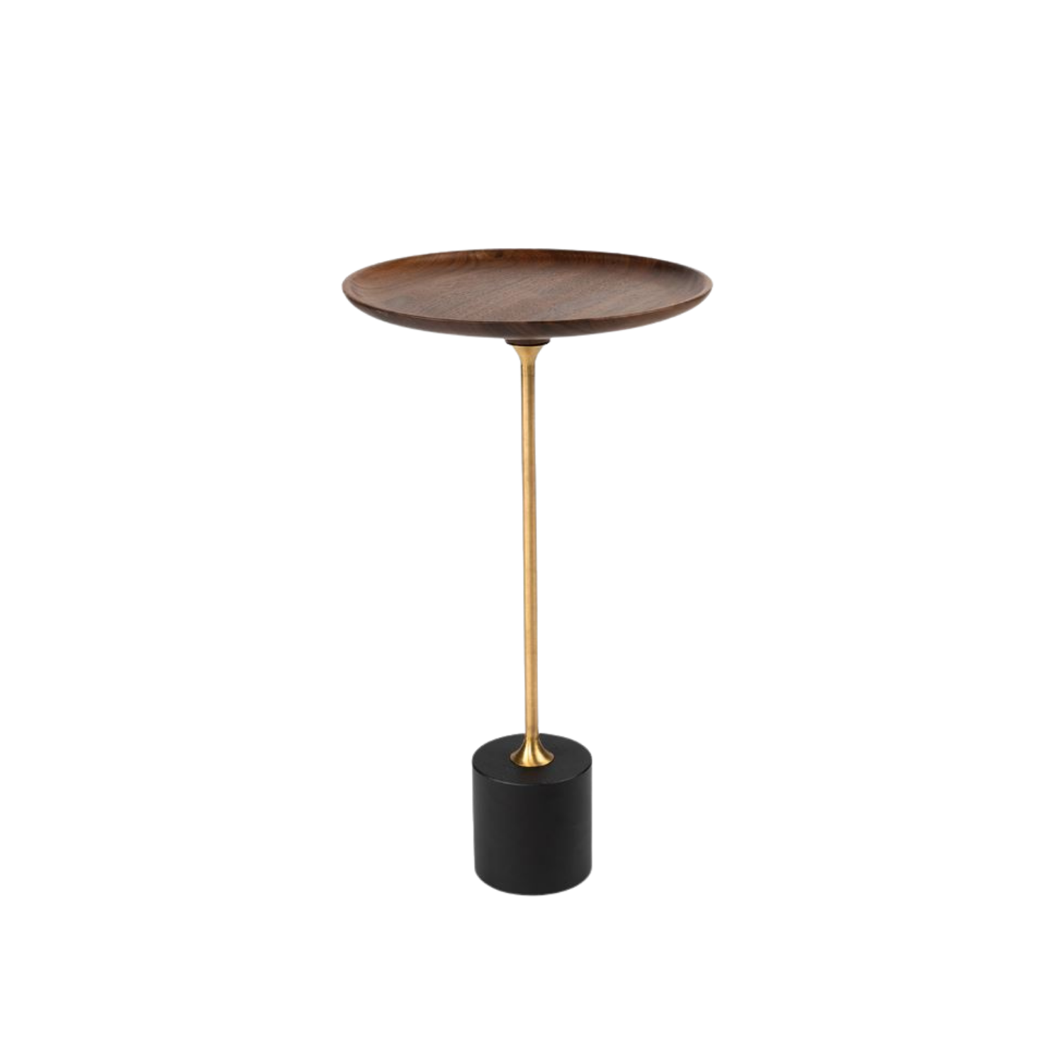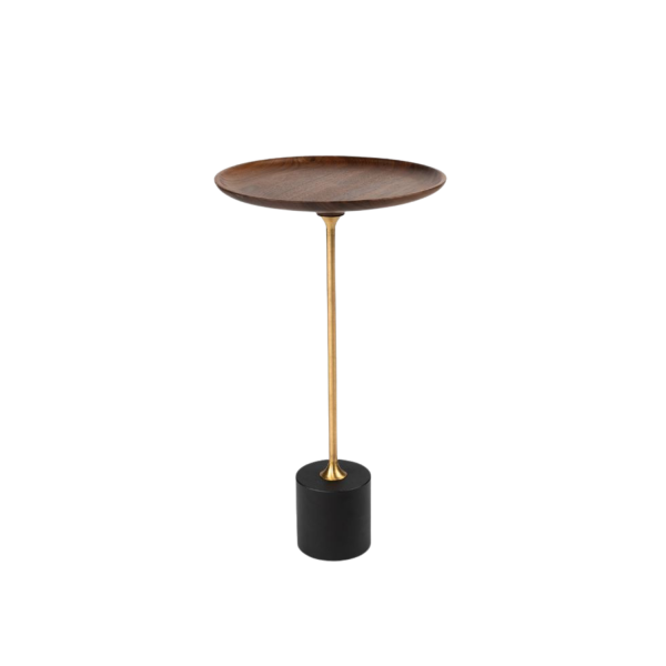 Misschien wel het kleinste bijzettafeltje van onze collectie, maar met een groots karakter. De slanke vormgeving en de luxe materialen maken dit kleine tafeltje onmisbaar in jouw interieur. De zwarte natuurstenen voet zorgt ervoor dat de tafel niet makkelijk om zal vallen. Het houten blad en de gouden details zorgen voor de puntjes op de i in dit ontwerp.