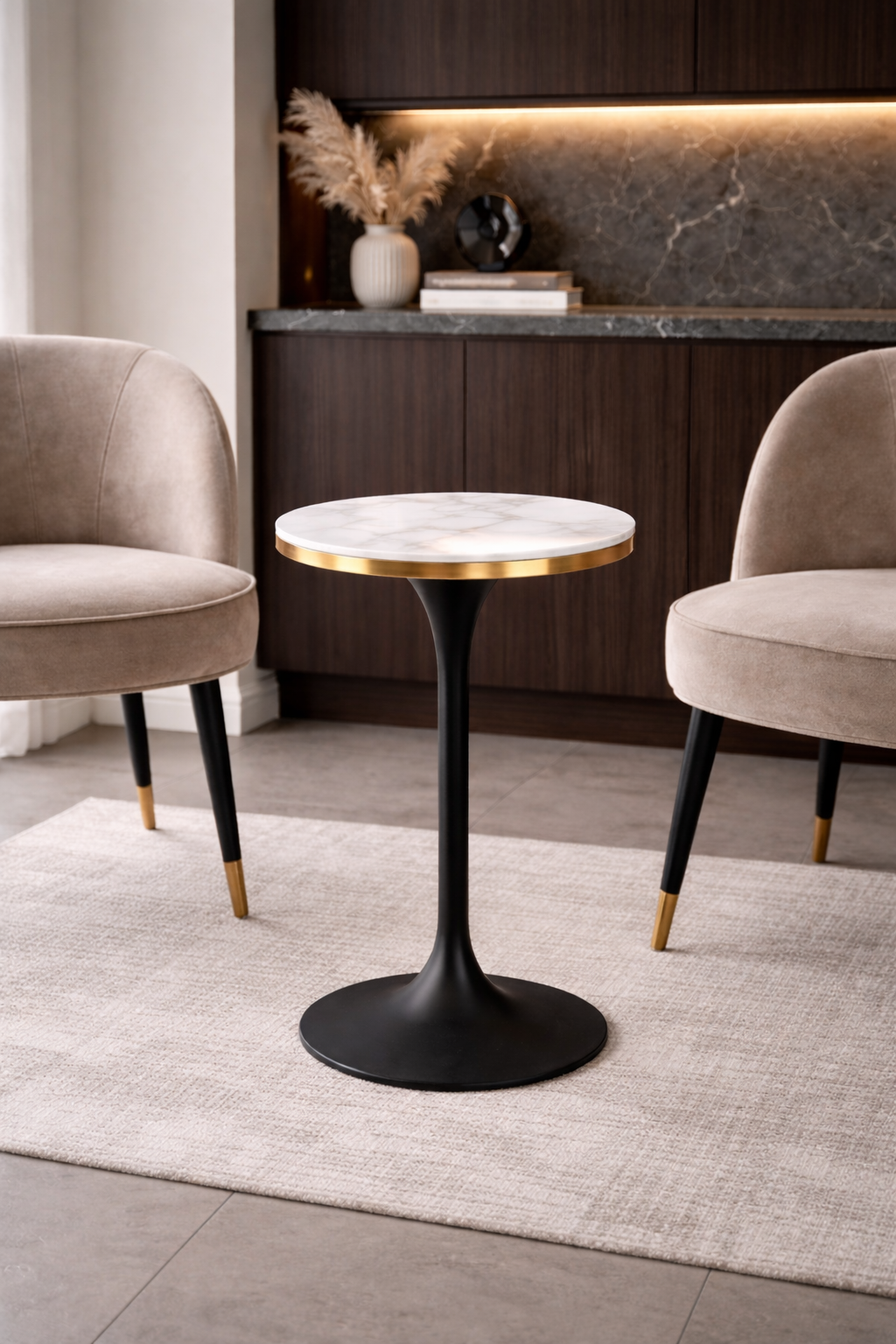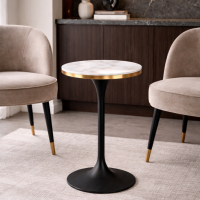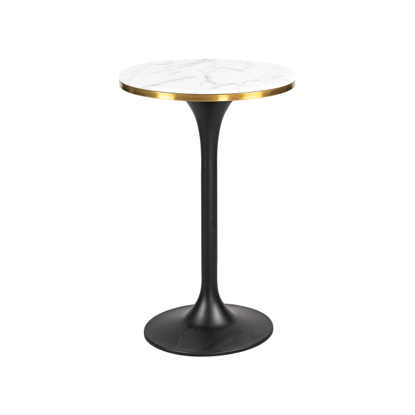 Deze stijlvolle bijzettafel sluit perfect aan bij de marmer- en goudtrend. De ronde vorm zorgt voor een moderne uitstraling die in elk interieur past. Het marmeren glas in combinatie met brushed gold details geeft de tafel een luxe en tijdloze look.