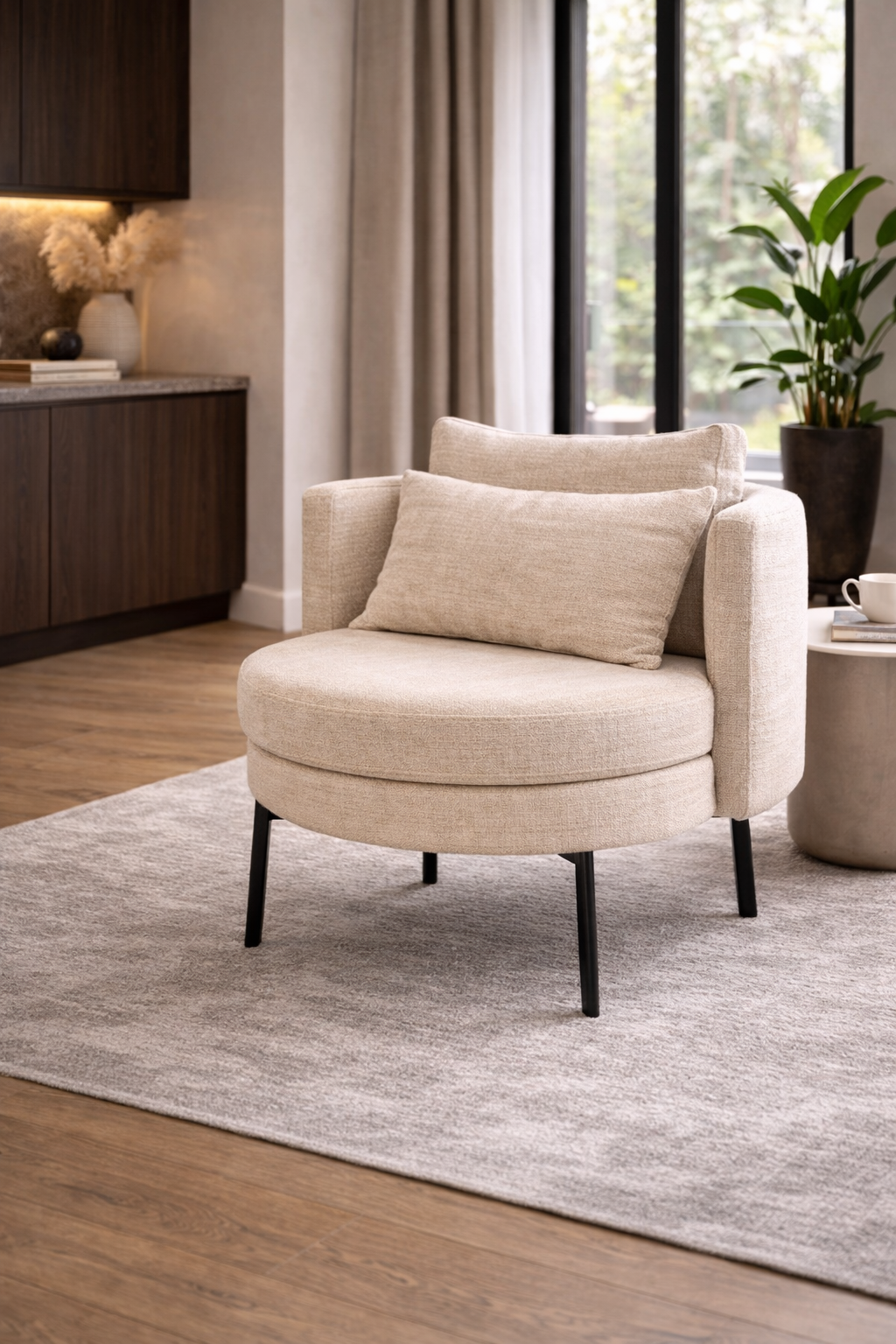 De Xavi fauteuil combineert een strak, eigentijds design met een comfortabele ronde zitting en slanke metalen poten. Dankzij de uitgebalanceerde vormen en hoogwaardige afwerking is dit een stoel die zowel stijl als comfort biedt. Perfect als eyecatcher in moderne interieurs, maar ook prettig om op te zitten tijdens een moment voor jezelf of een gezellig samenzijn. De Xavi fauteuil voegt direct karakter en elegantie toe aan je woon of werkruimte.