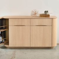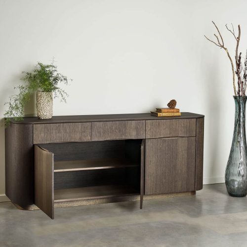 Het Collum dressoir van PBJ Designhouse combineert een elegant, organisch design met slimme opbergruimte. De gebogen houten deuren met softclose-systeem en verstelbare poten zorgen voor stijl en functionaliteit in elk interieur.