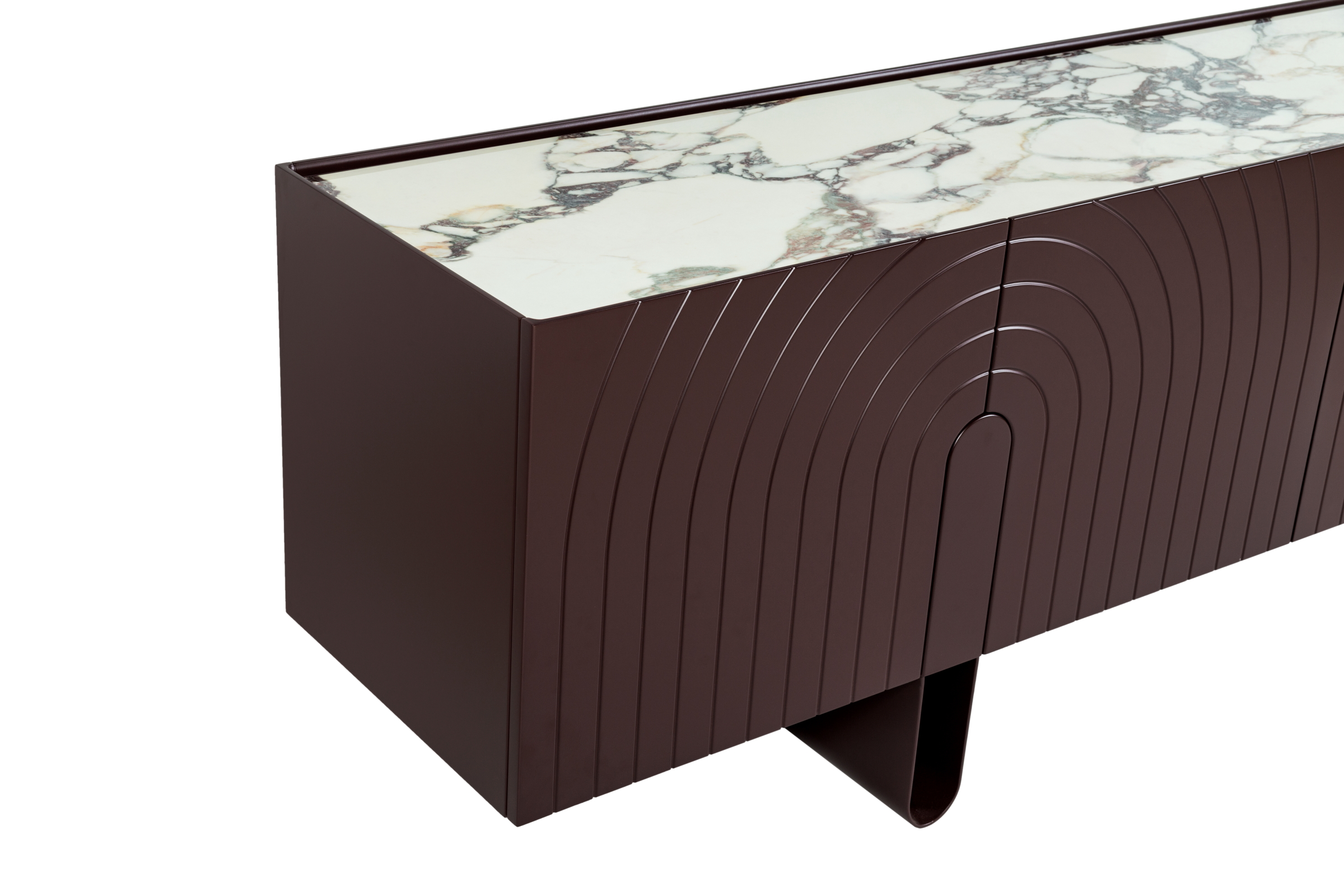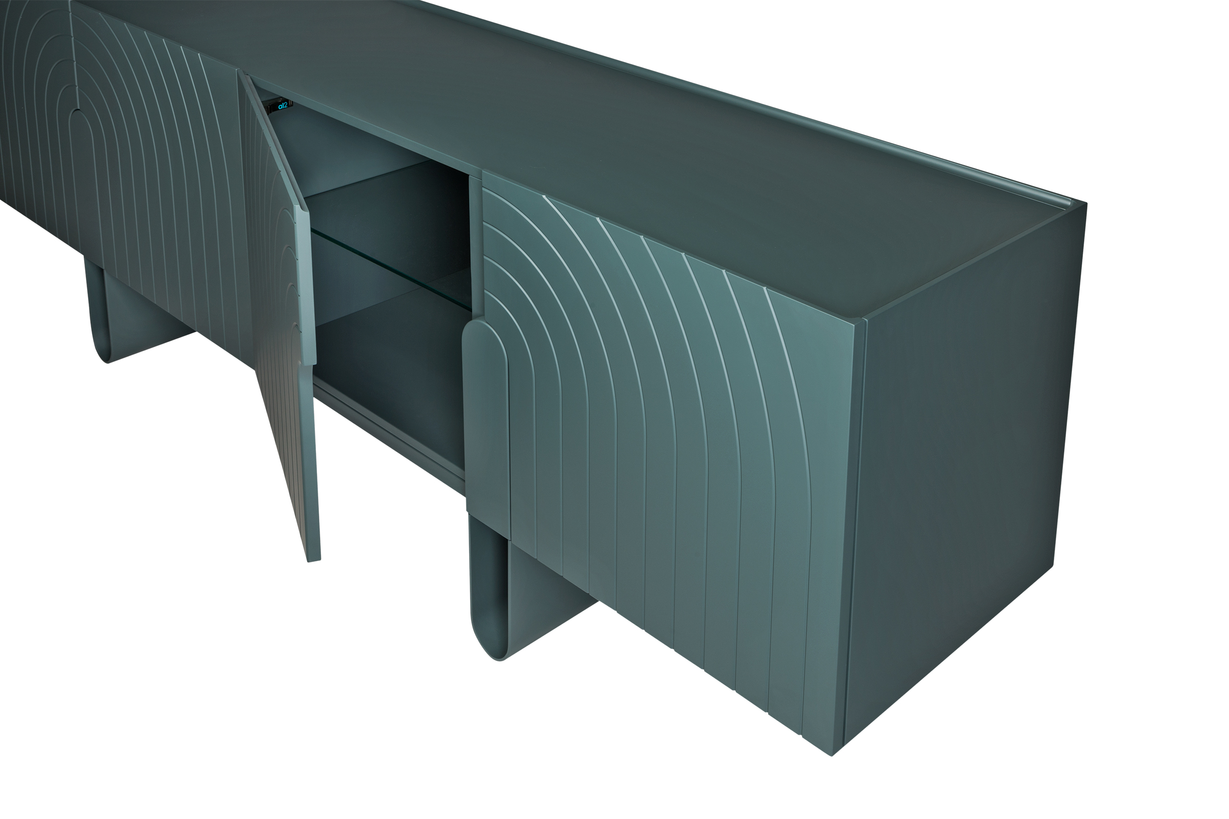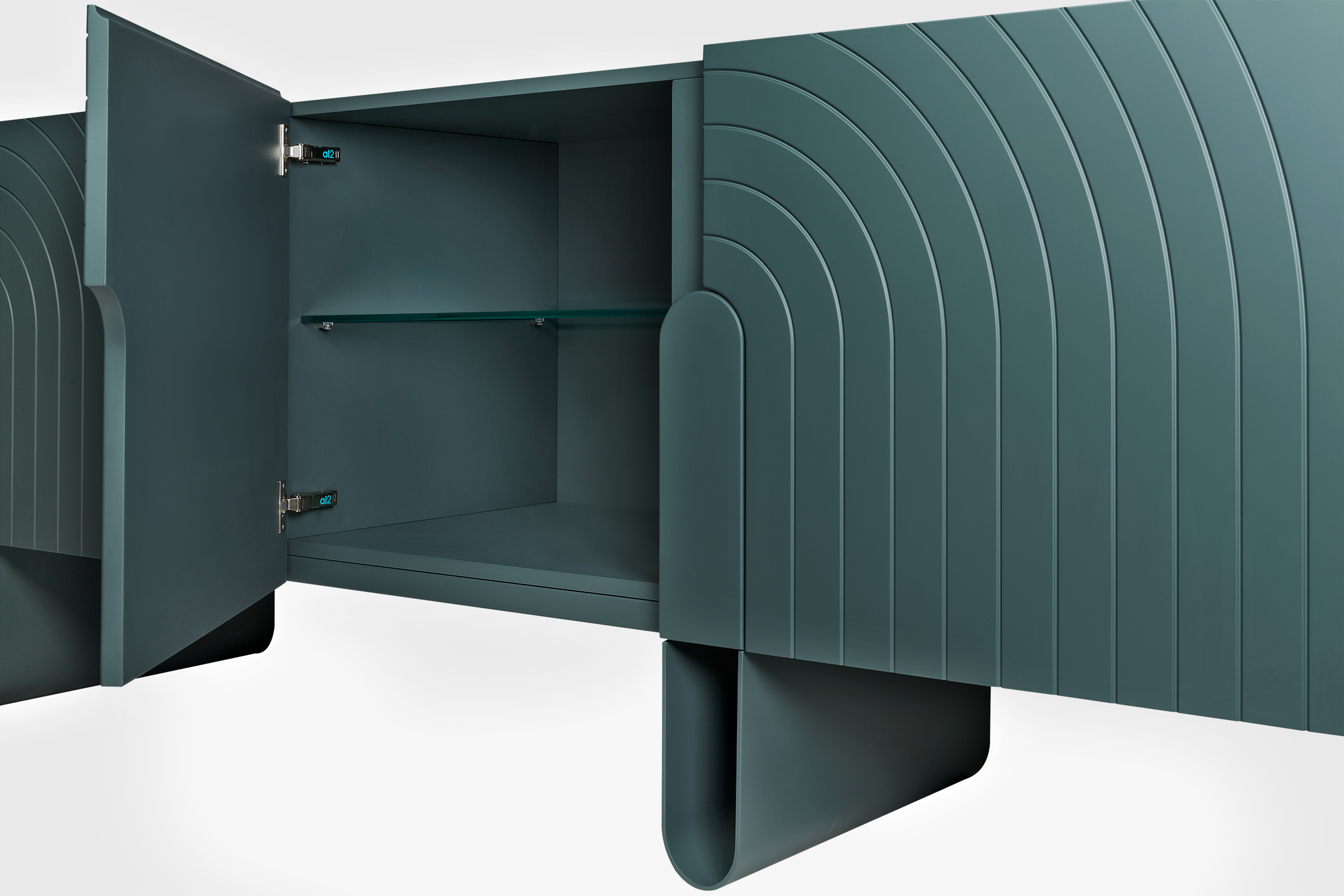 Dressoir Tangier van het Griekse merk al2 is een speels maar stijlvol designmeubel dat direct de aandacht trekt. Het ontwerp onderscheidt zich door de vloeiende ronde lijnen in zowel de deurtjes als de poten, wat het dressoir een elegante en unieke uitstraling geeft. Door de combinatie van verfijnde details en hoogwaardige materialen vormt de Tangier een echte eyecatcher in uw interieur, waarbij functionaliteit en design moeiteloos samenkomen.