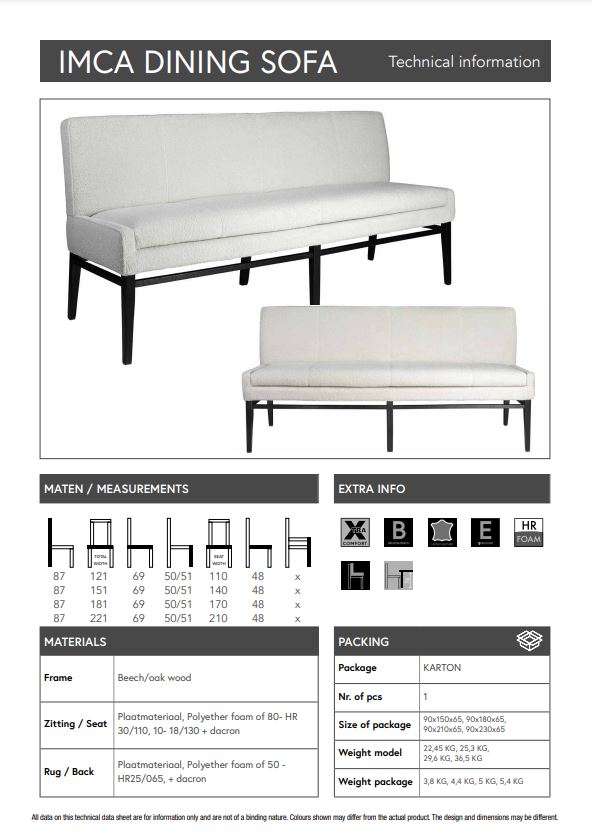 Eetkamerbank Imca is een stijlvolle en praktische toevoeging aan jouw eettafel en interieur. De bank biedt voldoende zitruimte voor iedereen en is volledig aan te passen aan jouw woonstijl.