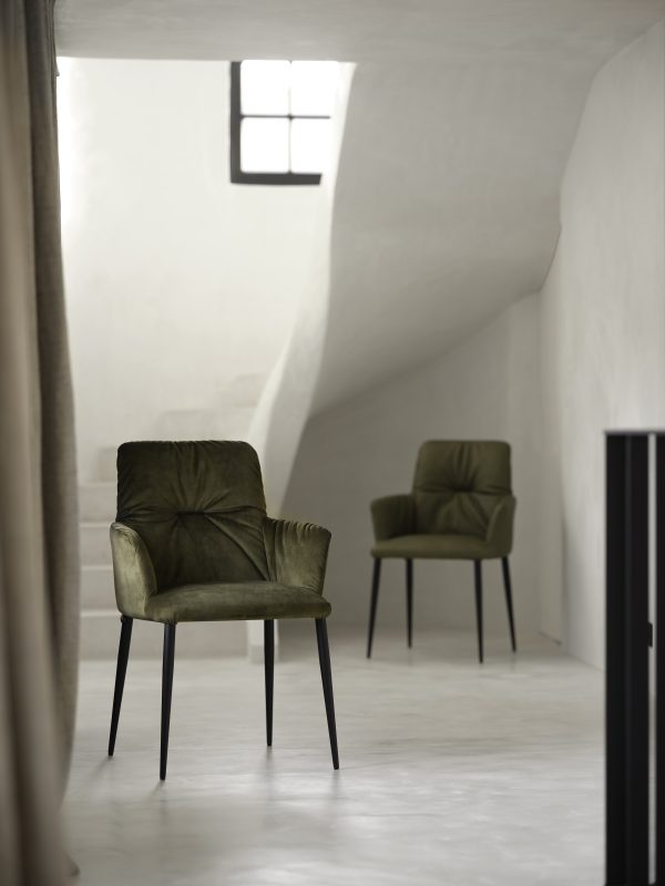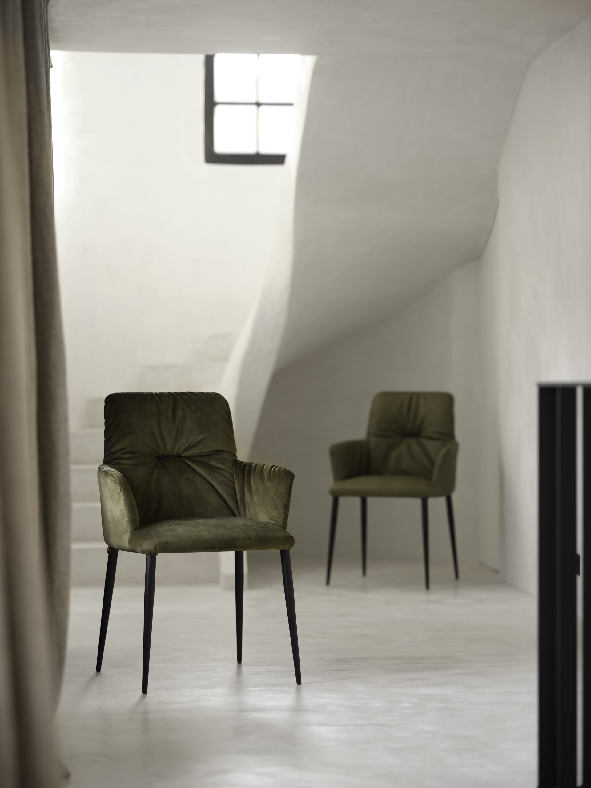 De Mobitec Aura eetkamerstoel combineert elegant design met ultiem zitcomfort. De gewatteerde rug nodigt uit tot ontspanning, terwijl de slanke kegelvormige poten in hout of metaal een stijlvolle touch geven. Kies zelf de uitvoering met of zonder armleuningen, de bekleding en de kleur van de poten voor een volledig gepersonaliseerde stoel die perfect bij uw interieur past. Mobitec, een Belgisch merk gespecialiseerd in hoogwaardige maatwerkstoelen en tafels, staat garant voor kwaliteit en tijdloze vormgeving.