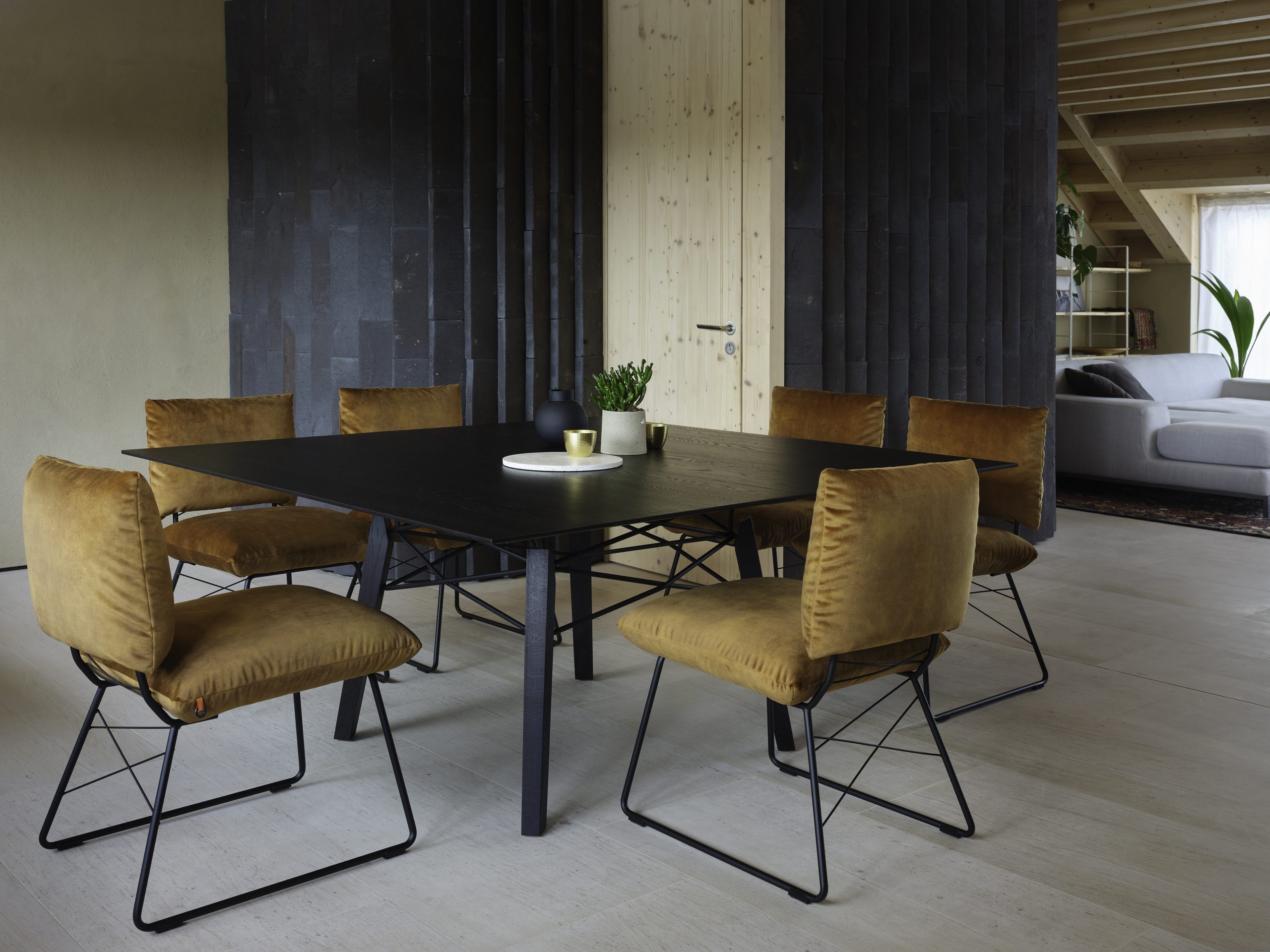 De Mobitec Cosy eetkamerstoel is een echte eyecatcher voor designliefhebbers. De speelse details op de rugleuning geven de stoel karakter, maar hij is ook verkrijgbaar zonder deze details voor een subtielere look. U kunt kiezen voor een uitvoering met of zonder armleuningen, uit honderden stoffen en diverse kleuren voor de poten. Bovendien is de Cosy ook leverbaar als eetkamerbank. Mobitec, het Belgische merk gespecialiseerd in maatwerkstoelen en tafels, staat bekend om zijn hoge kwaliteit en eigentijds design.