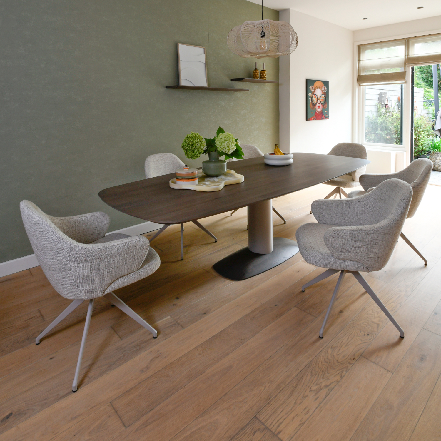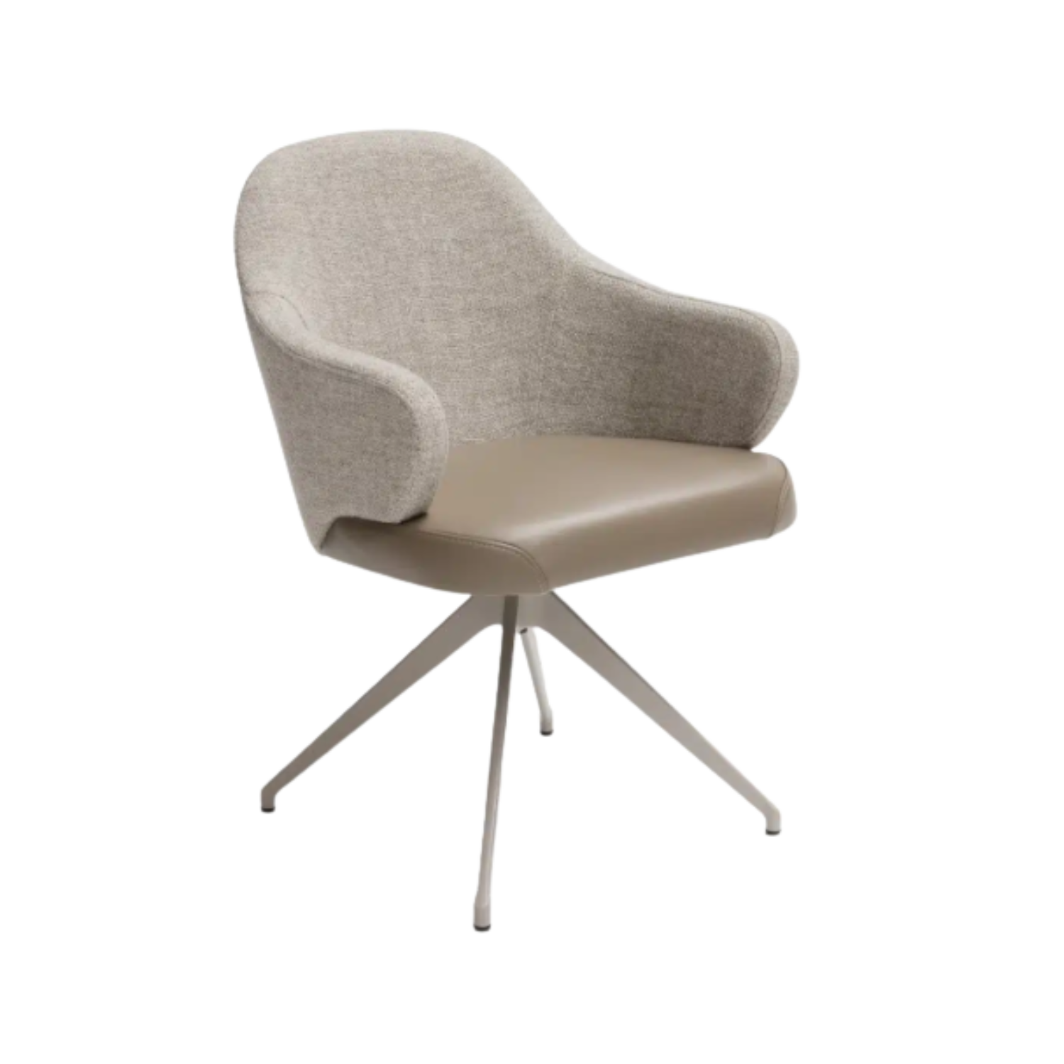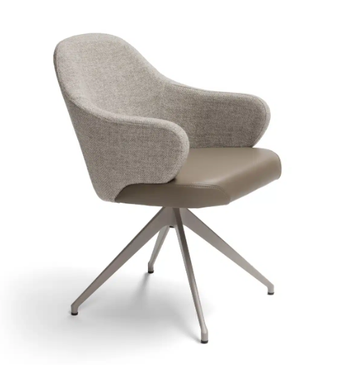 De nieuwe eetkamerstoel Linq heeft een royale kuip waardoor hij ook als eetkamerfauteuil gezien mag worden. De draaibare kuip is opgebouwd uit een losse zitting en rug die aan elkaar gekoppeld kunnen worden (vandaar de naam Linq). Zeker bij combistofferingen van stof en leer kan hiermee een chique contrast worden gecreëerd, waarbij de mogelijkheid bestaat om de fantasie de vrije loop te laten.