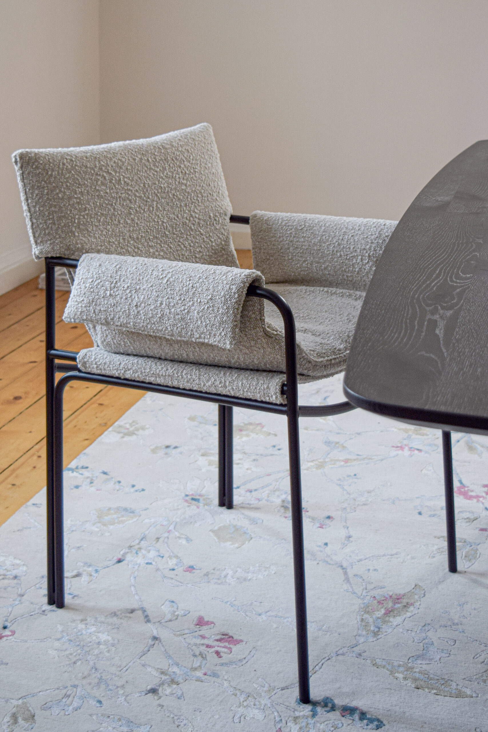 Eetkamerstoel Loop is de nieuwste minimalistische stoel met een nieuwe kijk op de ‘director’s chair’. De strak getekende lijnen zorgen voor en open en tijdloos design. Dit design wordt vertaald door het gebruik van enkel de beste materialen en het beste vakmanschap. De dubbel gelaagde stoffen of leren bekleding in de rugleuning en zitting bieden het beste vomfort. Om de wensen nóg meer te beantwoorden is de uitneembare kussenhoes ontwikkeld. Hiermee bieden de ontwerpers van KFF niet alleen extra comfort, maar ook de kans om de stoel heel uniek te bekleden. Denk hierbij bijvoorbeeld aan een duo stoffering tussen leer en stof.