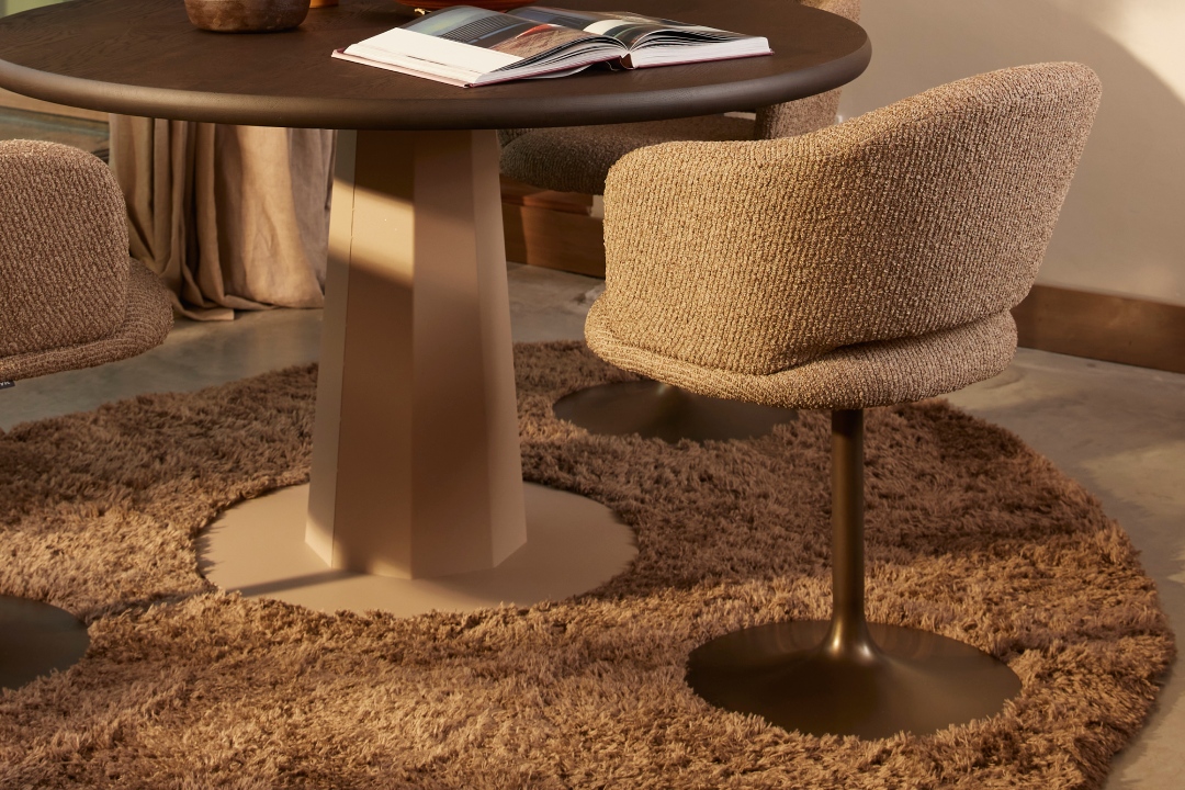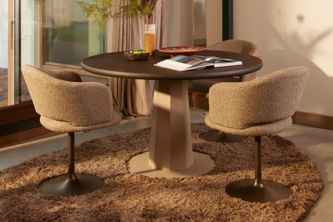 De Eetkamerstoel Nonna verdient een opvallende plek aan je eettafel. Met een comfortabele zit en een soepele rugleuning is natafelen een waar plezier. Kies je favoriete uitvoering: de draaivoet met vier tenen voor een praktische en alledaagse look, of de draaiende trompetvoet voor een elegante touch met karakter.