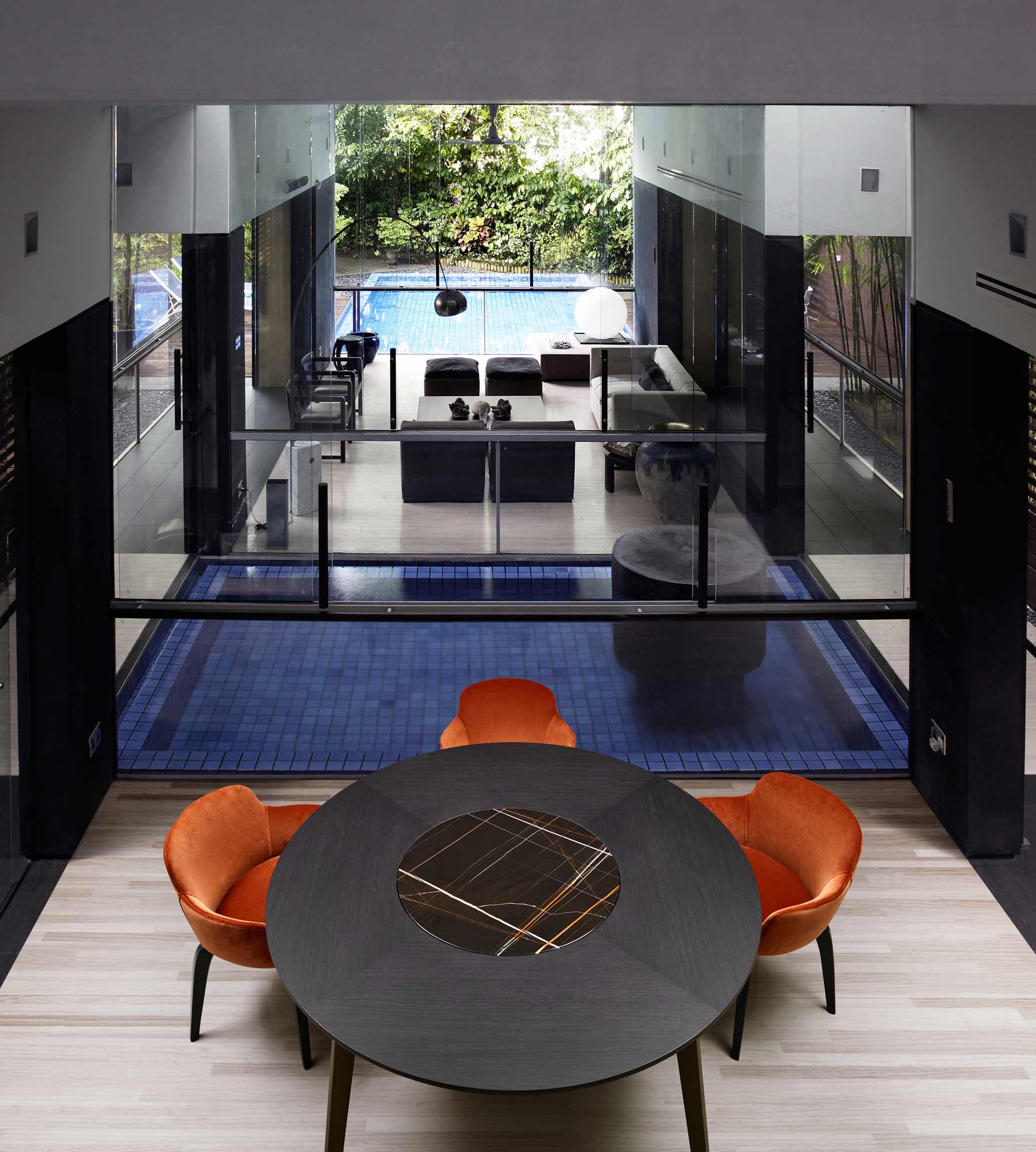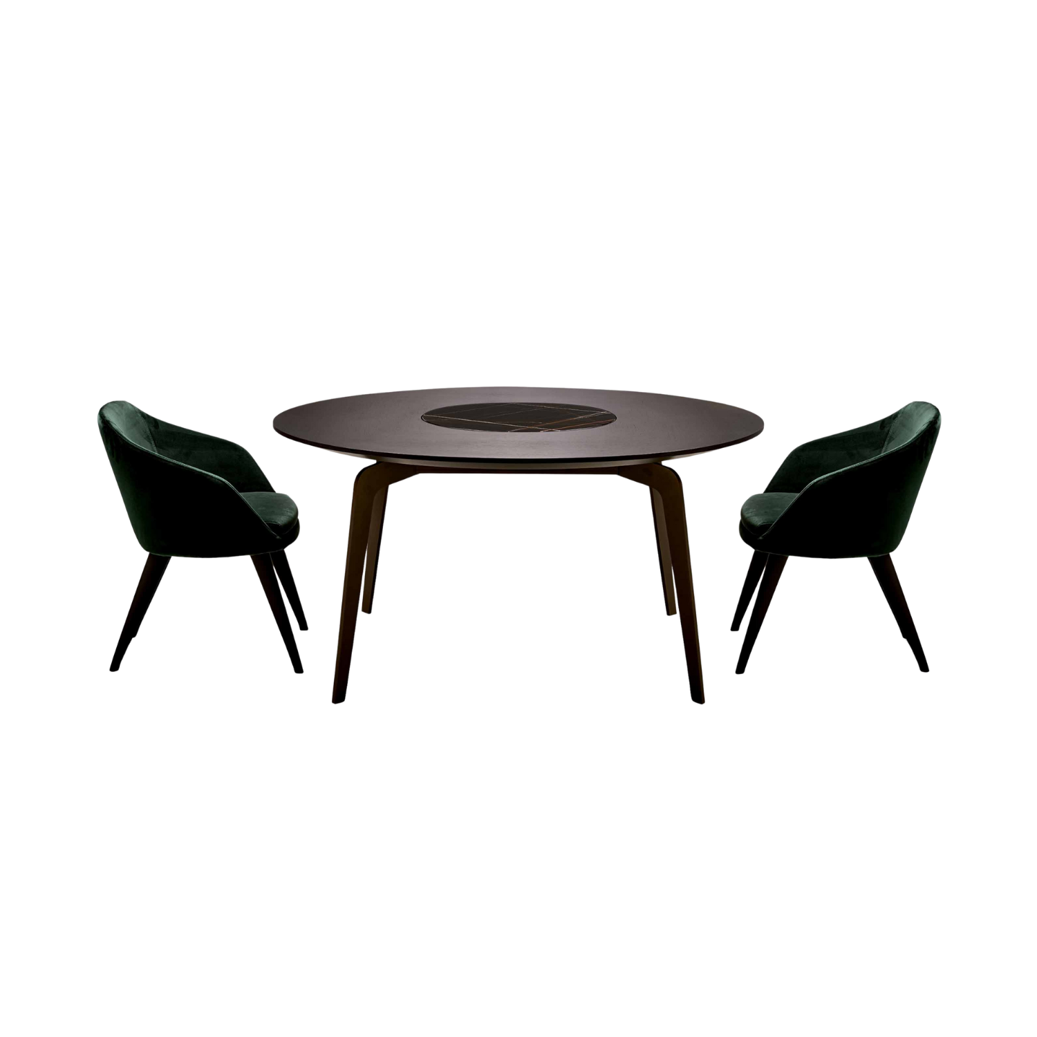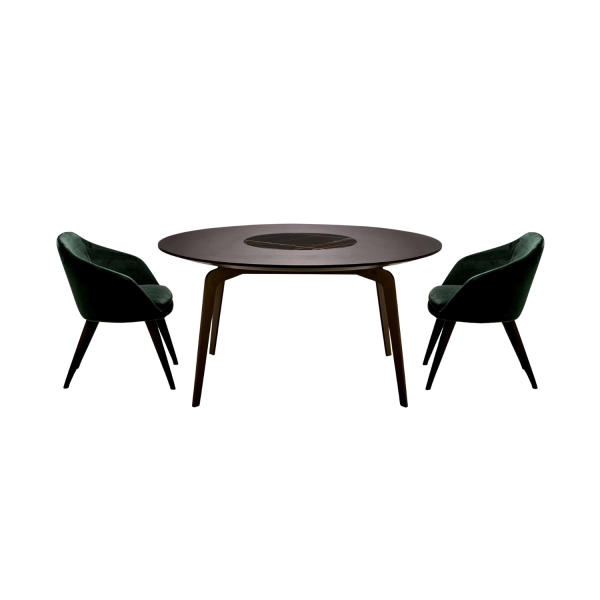 Een authentiek voorbeeld van “goed ontwerp” dat de puurheid van ontwerp en functionaliteit combineert. De eetkamertafel Earth is een royale ronde tafel, met een centrale draaibare marmeren schijf, erg populair in Aziatische landen. Voor deze schijf is er keuze uit 7 verschillende kleuren marmer. De metalen voet is standaard in donker brons, en het houten blad is in drie kleuren verkrijgbaar.