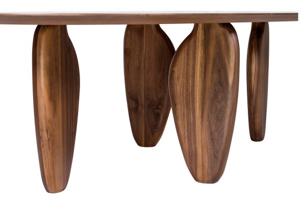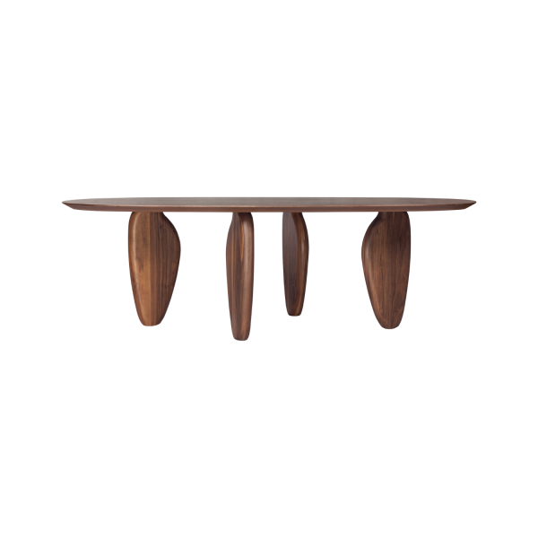 De Eettafel Echo van het Griekse merk AL2 is een indrukwekkend en uniek meubelstuk. Deze tafel valt op door zijn bijzondere, sculpturale poten, die een echt statement maken in elk interieur. De tafel straalt warmte en elegantie uit door de natuurlijke houtnerf en de rijke kleur. De combinatie van hoogwaardige materialen en een opvallend design maakt de Eettafel Echo een prachtige toevoeging aan elke eetkamer.