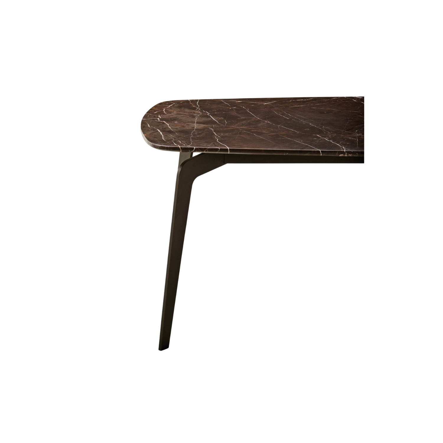 De Olivia eettafel heeft een elegant eclipsvormig ontwerp en is verkrijgbaar in vier marmerafwerkingen. De bruine metalen poot biedt stabiliteit en draagt bij aan de verfijnde uitstraling. Deze tafel combineert luxe esthetiek met functionaliteit, ideaal voor elke eetkamer.