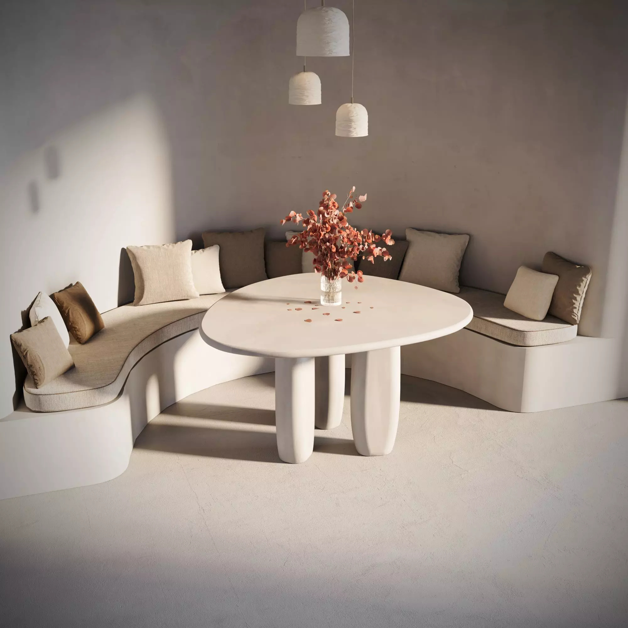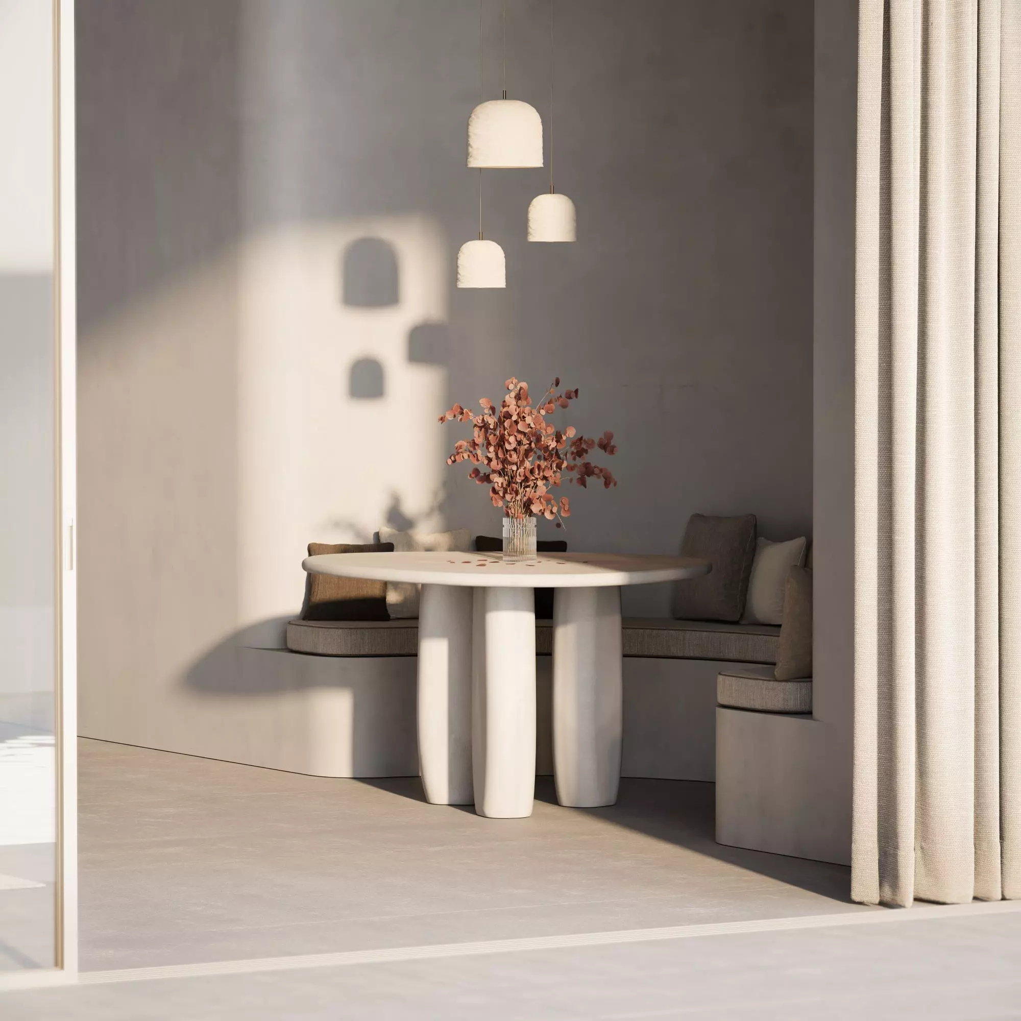 De Tone tafel van Muundo is een sculpturale design eettafel met zachte, organische vormen en een unieke handgemaakte afwerking. Gemaakt van duurzaam Mortex® materiaal is de tafel sterk, waterbestendig en geschikt voor zowel binnen als buiten. Met verschillende maten en kleuren stel je de Tone tafel perfect samen voor een modern, stijlvol interieur.