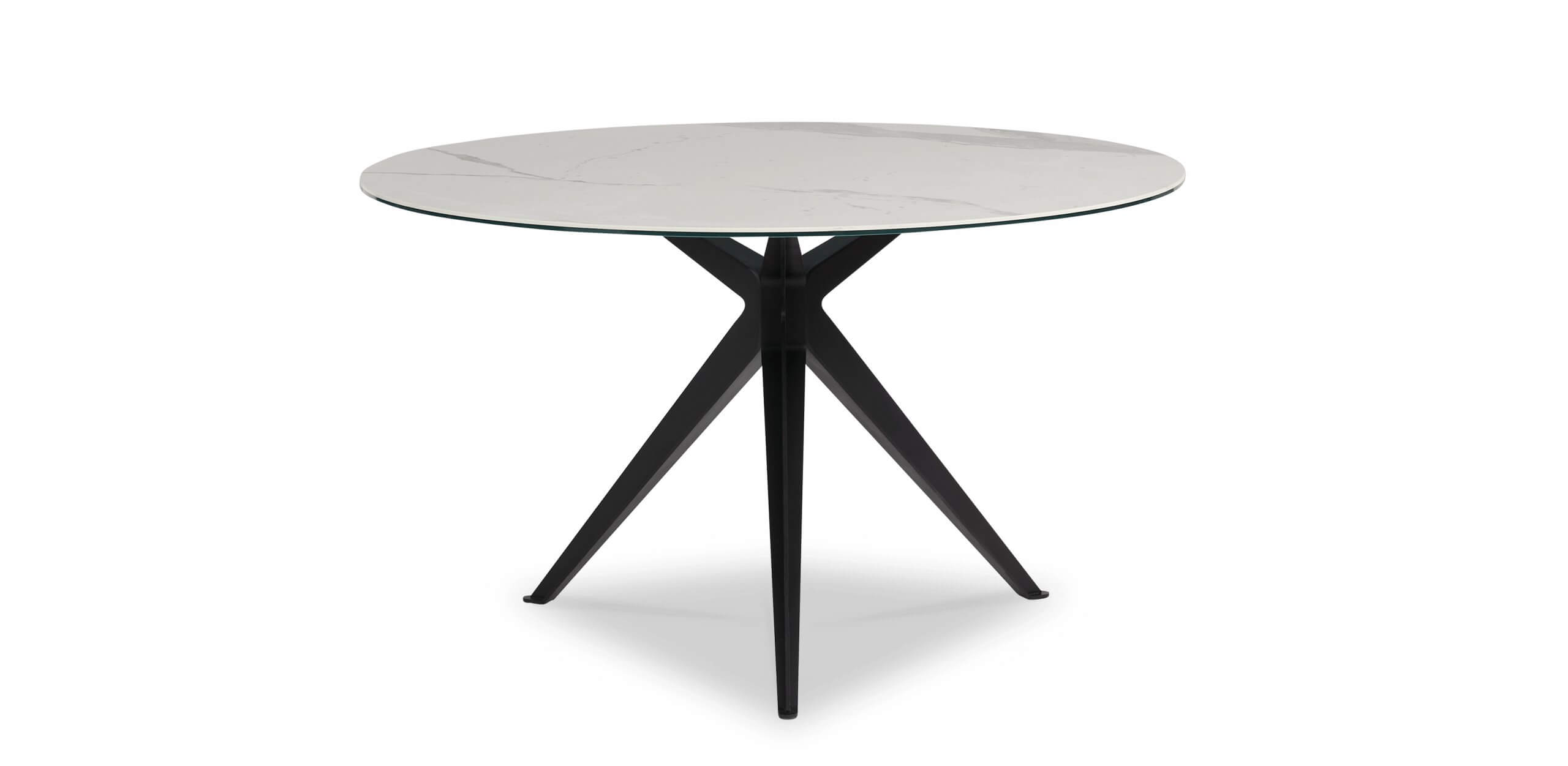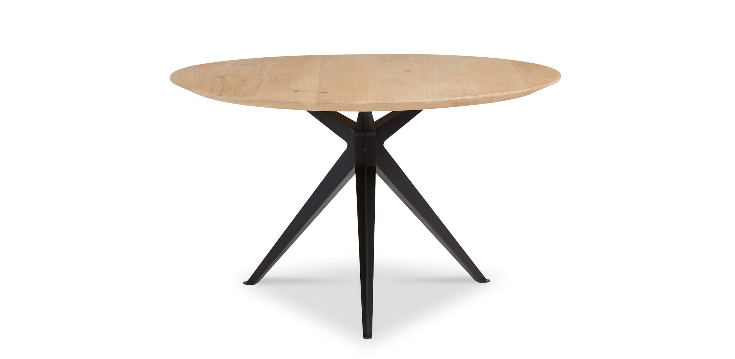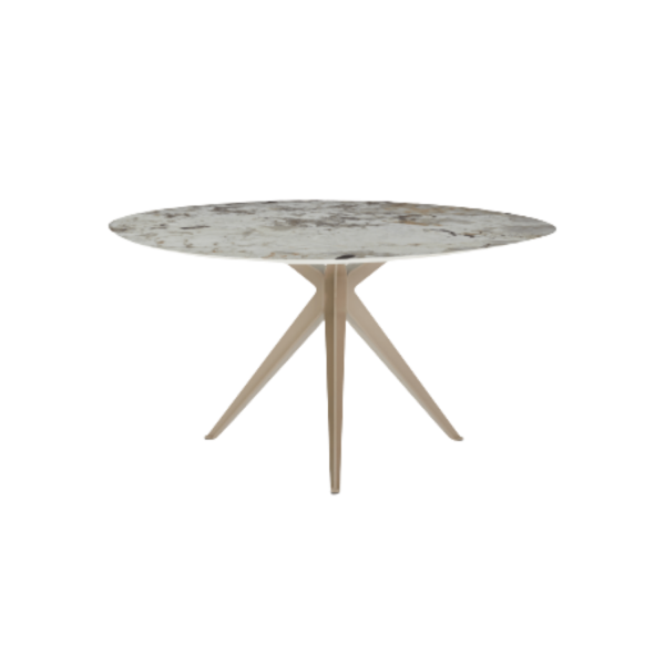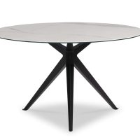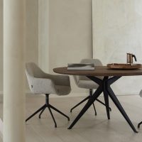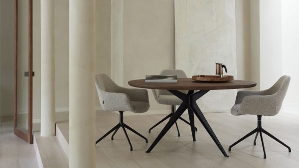 De rond organische eetkamertafel Stella vormt het warme middelpunt van de eetkamer. De bijzondere vorm van het blad verkrijgbaar in hout of keramiek geeft de tafel een eigen karakter dat in uiteenlopende interieurs tot zijn recht komt. De kruislings geplaatste poten zorgen voor een speels en stijlvol detail, waardoor Stella net even anders is.