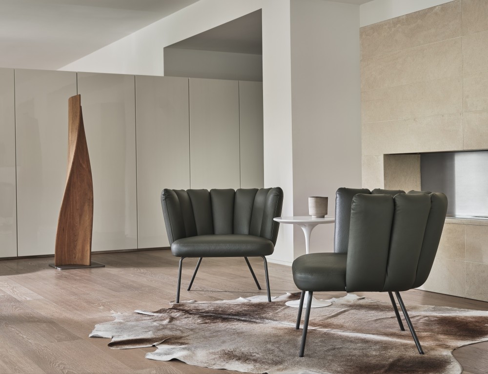 Het eerste Gaia model, ontworpen door de Italiaanse designer Monica Armani, doet men denken aan een bloesem bloem. Dit ontwerp heeft in 2018 de German Design award gewonnen. De fijne bekleding van de genereuze zitting en de 7 apart gestoffeerde, flexibele rugelementen zorgen voor onmiskenbaar, kalmerend comfort. Vrouwelijk design in prachtige stoffen en hoge kwaliteit leders. Een speels effect kan gecreëerd worden wanneer de zitting en de rugleuning in een contrasterend materiaal worden bekleed.