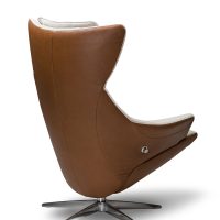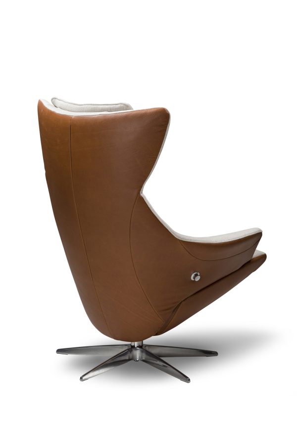 Model Samira komt zonder voetensteun, maar is te combineren met een losse hocker. Modellen met geïntegreerde voetensteun worden bediend via een hendel aan de zijkant van de fauteuil.