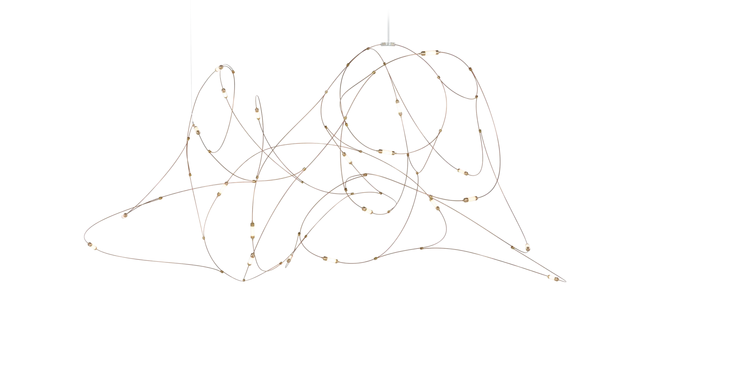 De Flock of Light lamp van Moooi ontworpen door Studio Toer is geïnspireerd door vuurvliegjes. De bronzen draden vormen strakke lijnen, terwijl de koperen bekers en LED-diffusers een zachte gloed verspreiden. Het ontwerp verandert van een subtiele uitstraling overdag naar een warme, sfeervolle verlichting ’s nachts en brengt elegantie en warmte in elke ruimte.