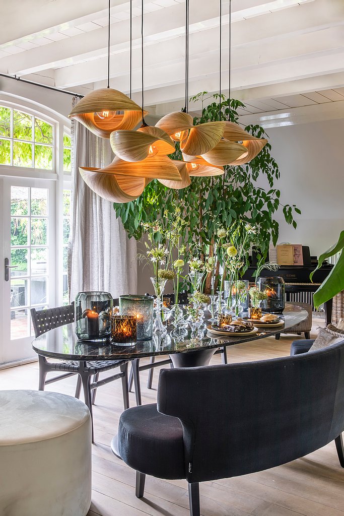 De Valbonne plafondlamp combineert een organische vorm met een eigentijdse uitstraling. Het licht schijnt zowel naar boven als naar beneden en maakt van elke ruimte een stijlvolle blikvanger. Handgemaakt van hoogwaardig bamboe, brengt de lamp warmte en natuurlijke elegantie in uw interieur. Verkrijgbaar in natuurlijk bamboe, zwart of wit en volledig aan te passen aan uw persoonlijke woonstijl. Ontdek hoe de Valbonne plafondlamp bij Colijn Interieur sfeer en karakter toevoegt aan uw interieur.