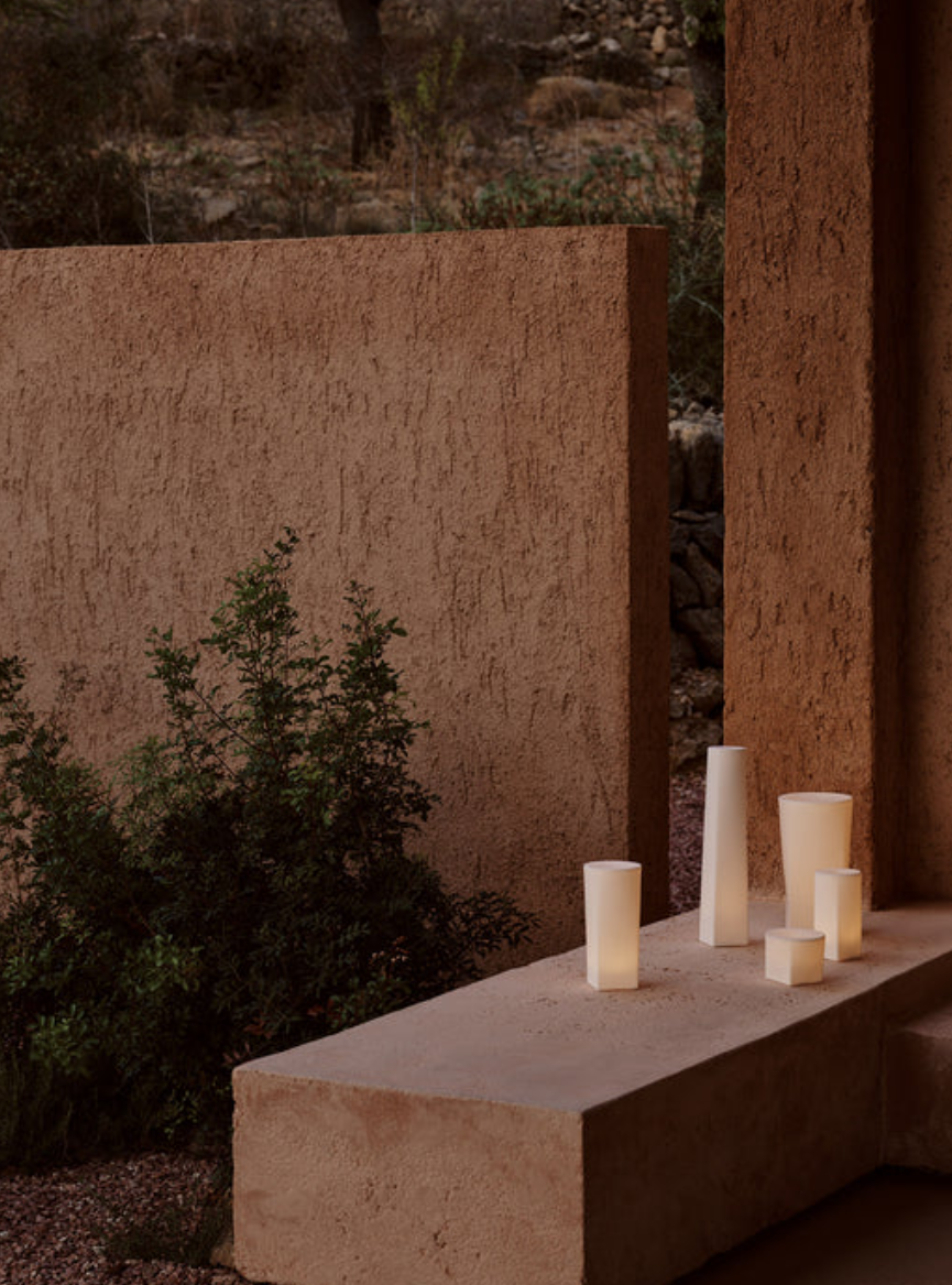 De kaars is verkrijgbaar in vijf verschillende maten. De kaars kan los in de ruimte worden geplaatst, maar is ook heel mooi als set.