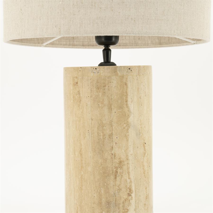 De Amara lamp van By-Boo is een stijlvolle combinatie van natuurlijke materialen en zachte vormen.By-Boo staat bekend om zijn creatieve en verrassende designs, waarbij elk ontwerp een unieke, eigen signatuur krijgt. De voet is gemaakt van travertin en wordt gecombineerd met een linnen kap, wat zorgt voor een warme en verfijnde uitstraling.