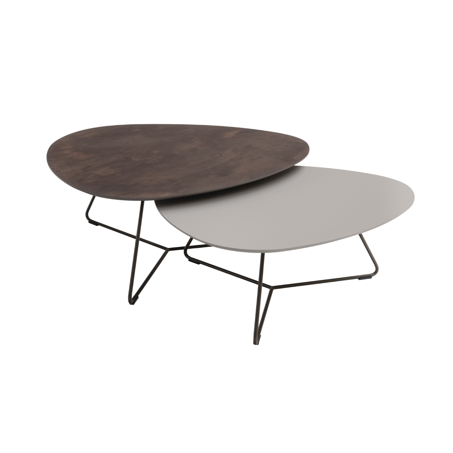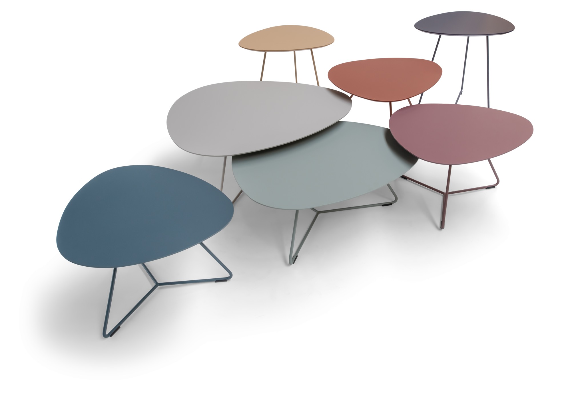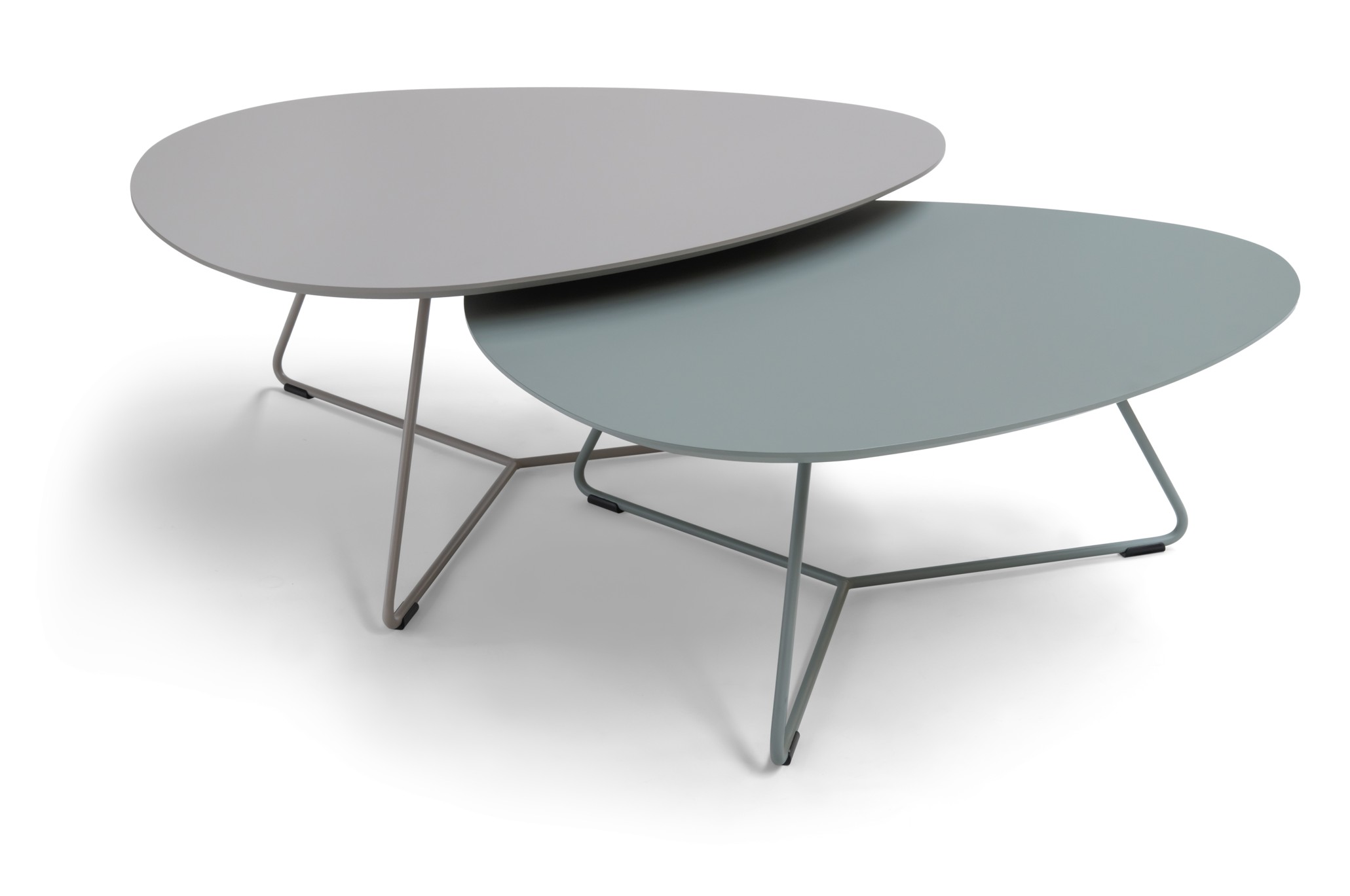 De ruime ei-vormige bladen bieden voldoende ruimte om al uw dagelijkse items te dragen. Het minimalistische frame houdt te tafels tegelijkertijd toch luchtig en ruimtelijk.