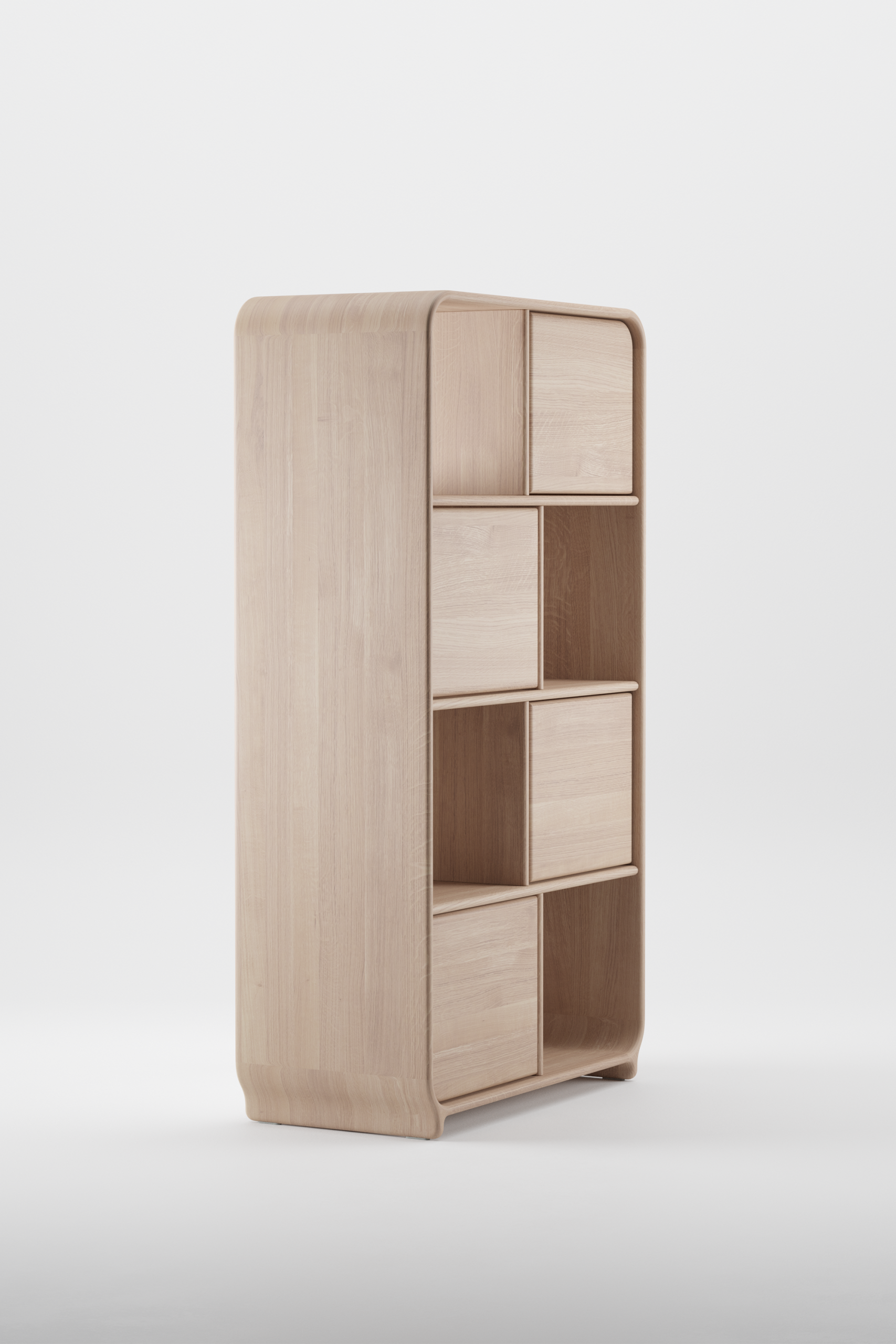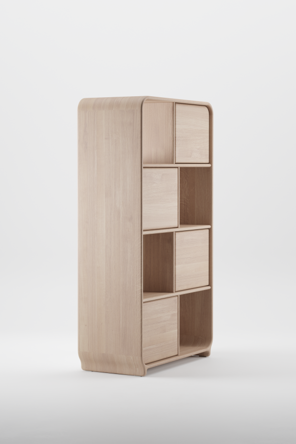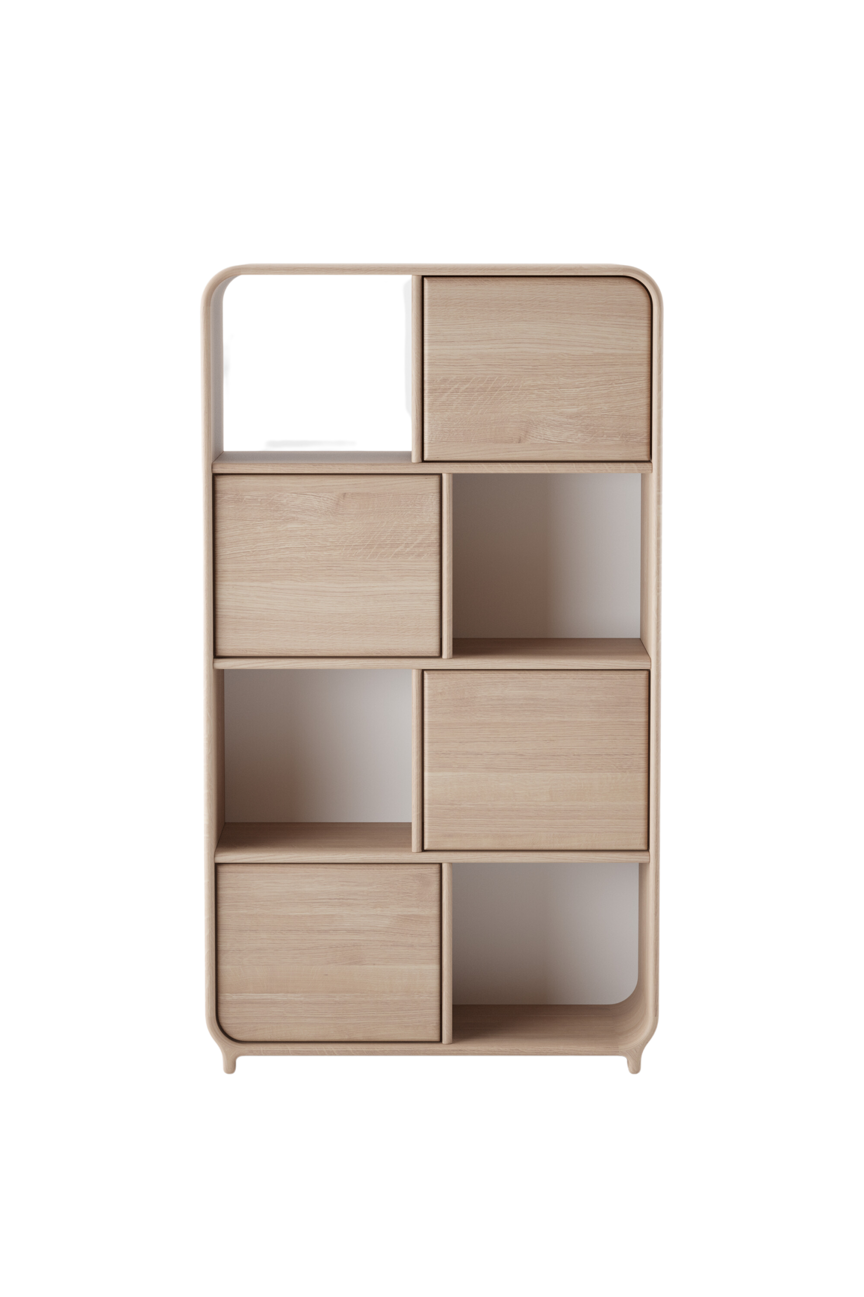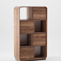 De Artisan Eny Shelf is een elegante vakkenkast van massief hout, die functionaliteit en stijl combineert. Met handige deurtjes voor opbergruimte en open vakken voor decoratie, biedt deze kast zowel organisatie als een luchtige uitstraling.