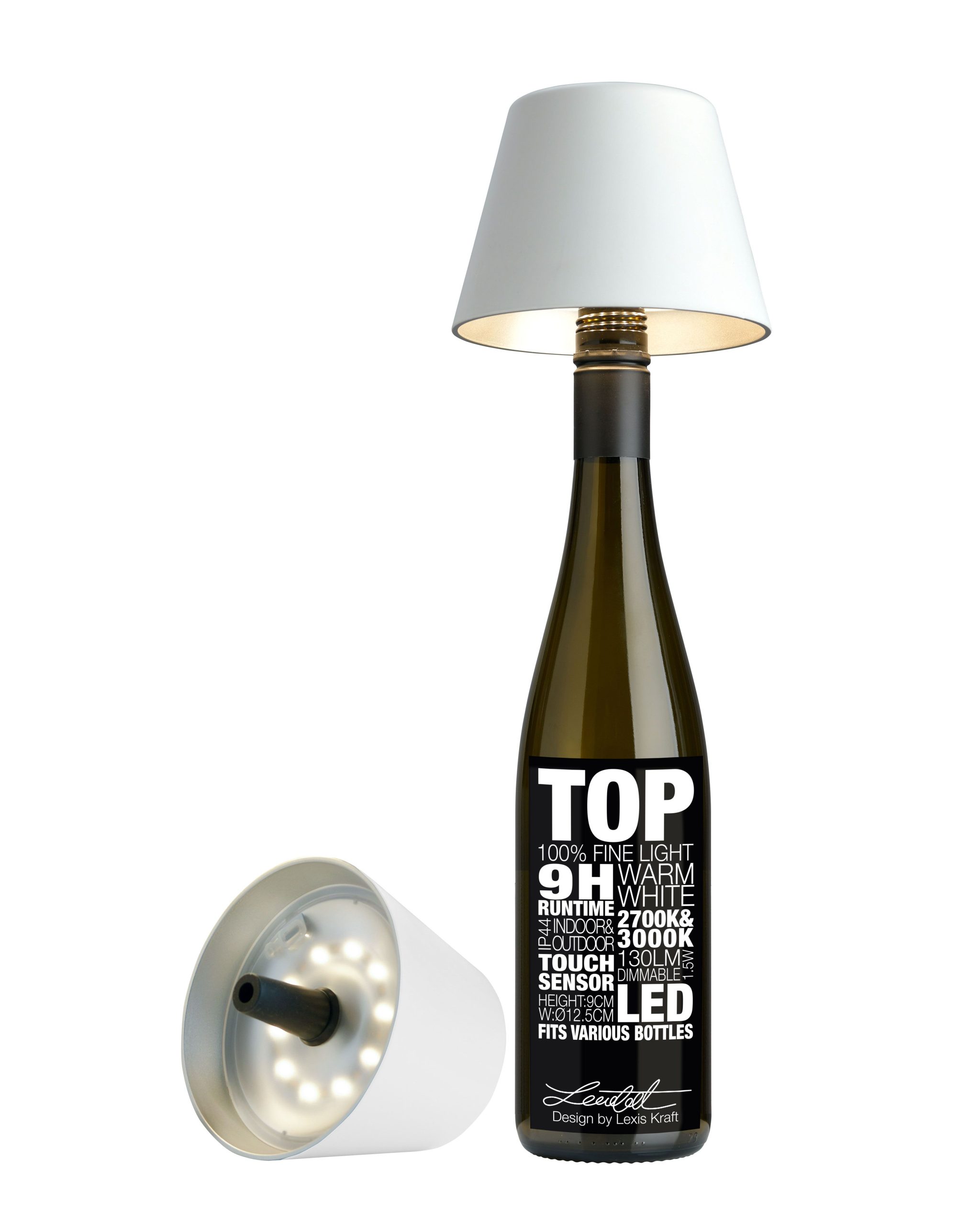 Geef een bijzondere fles een tweede leven met de TOP 2.0 flessenlamp van Sompex. Dankzij de conische siliconen stop past de lamp in vrijwel elke flessenhals en creëer je in een handomdraai een uniek lichtobject. De oplaadbare en dimbare LED-lamp geeft tot 40 uur sfeervol licht en is geschikt voor binnen en buiten. Verkrijgbaar in diverse kleuren
